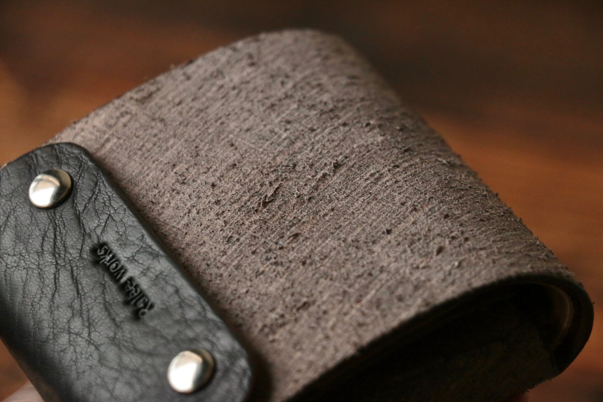 革を折り、一つ一つ手作業で作り上げています。使い込む事で、革の経年変化をより深く味わう事が出来ます。