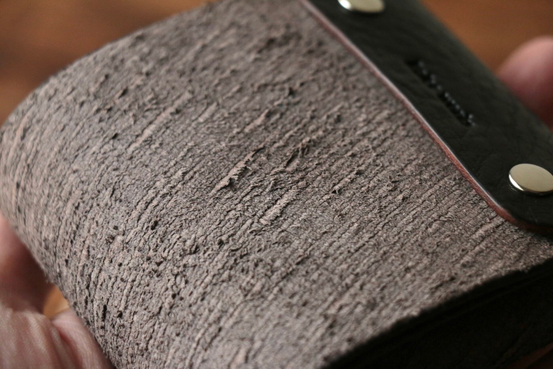 起毛させた革です。触り心地はザラザラとした布地のような質感です。