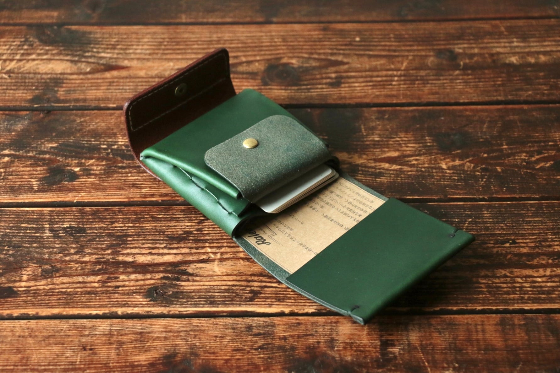 使い始めは革が硬くカードの出し入れやフタが固く感じられますが、使い込む事で徐々に馴染んでいきます。
