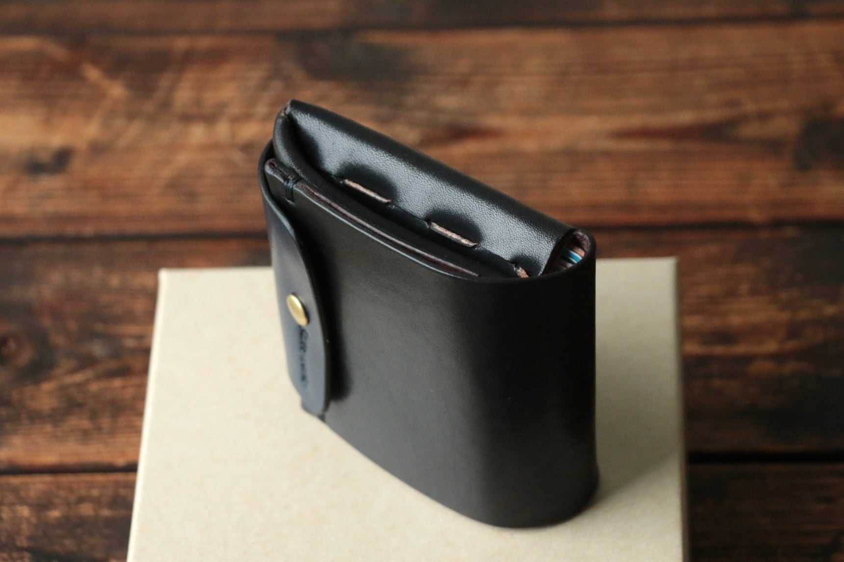 使い始めは革が硬くカードの出し入れやフタが固く感じられますが、使い込む事で徐々に馴染んでいきます。