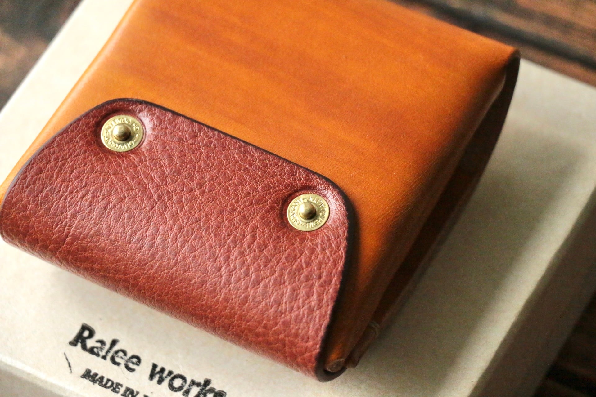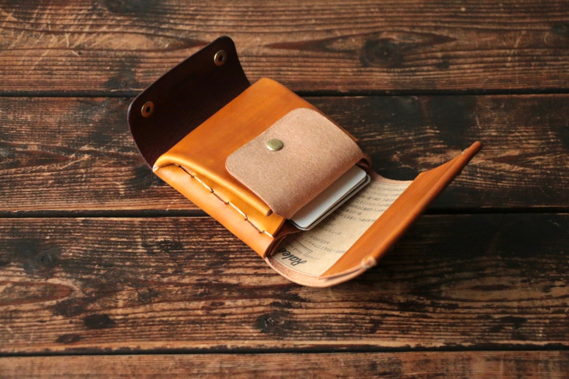 使い始めは革が硬くカードの出し入れやフタが固く感じられますが、使い込む事で徐々に馴染んでいきます。