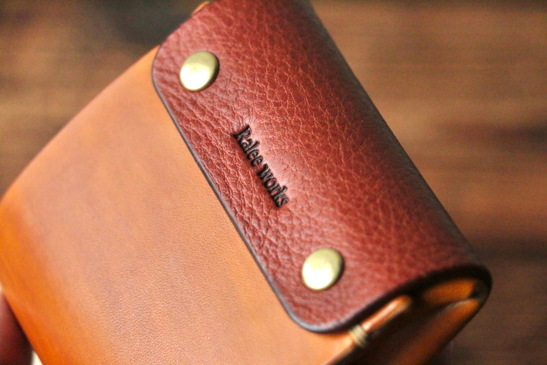 革を折り、一つ一つ手作業で作り上げています。使い込む事で、革の経年変化をより深く味わう事が出来ます。
