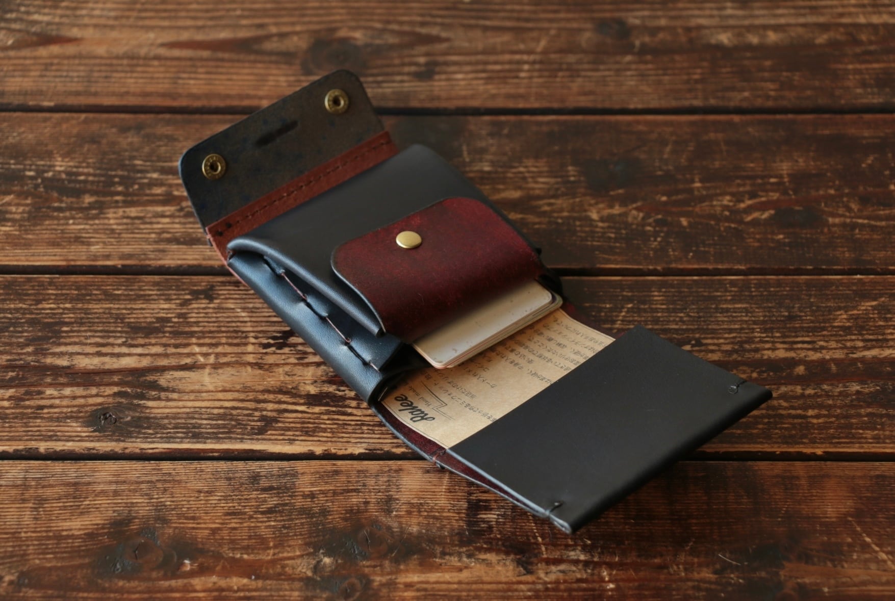 使い始めは革が硬くカードの出し入れやフタが固く感じられますが、使い込む事で徐々に馴染んでいきます。