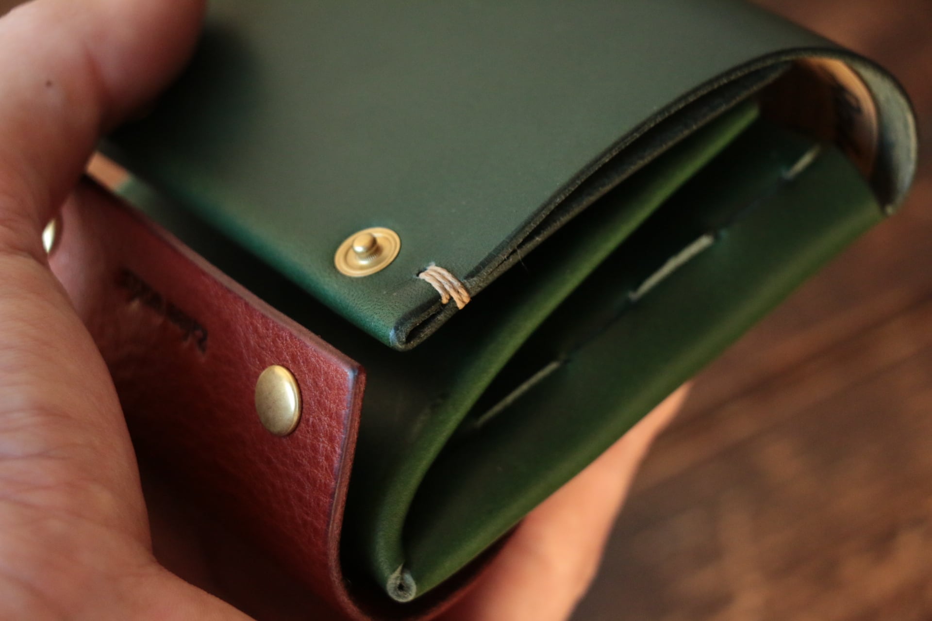 使い始めは革が硬くカードの出し入れやフタが固く感じられますが、使い込む事で徐々に馴染んでいきます。