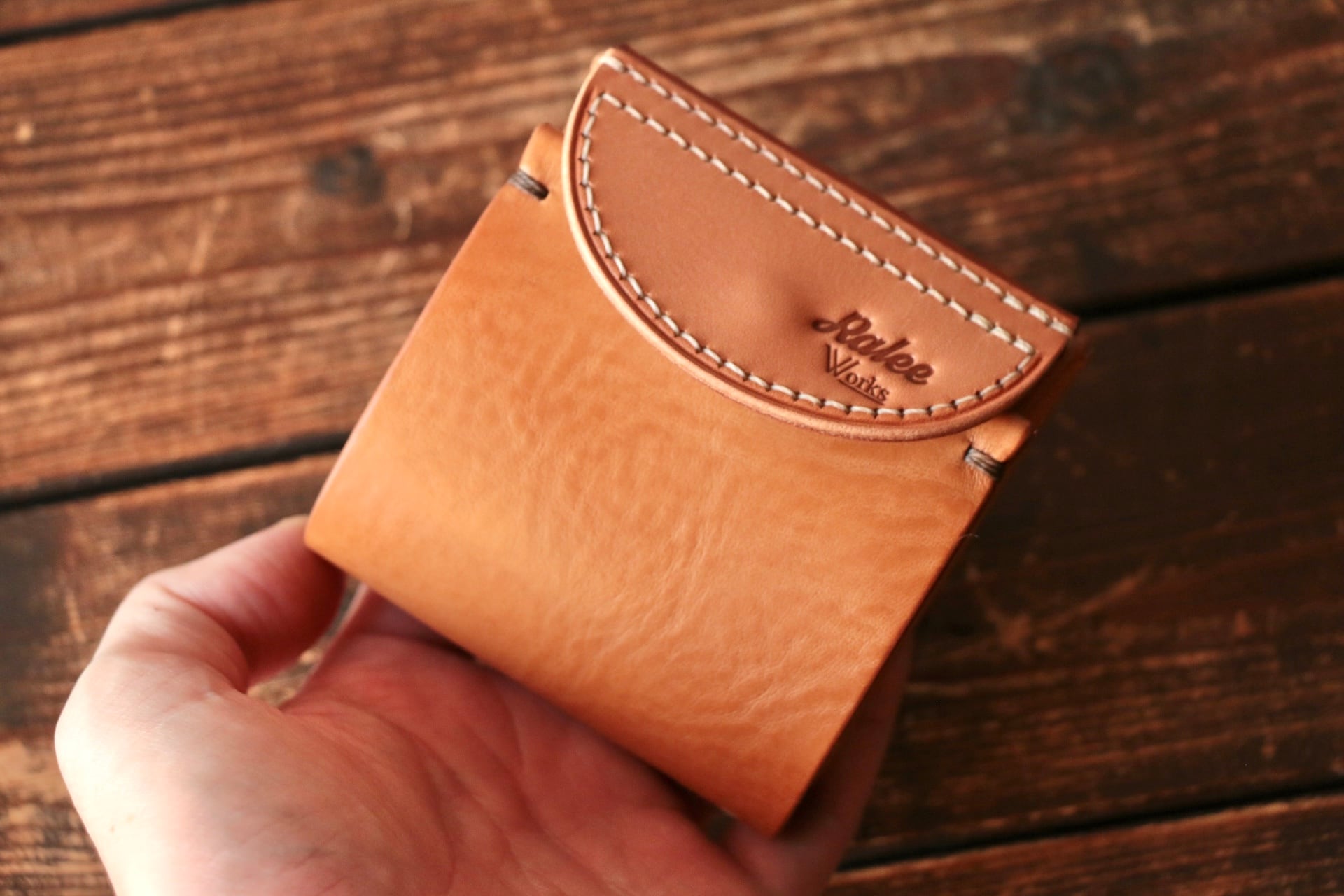 使い始めは革が硬くカードの出し入れやフタが固く感じられますが、使い込む事で徐々に馴染んでいきます。