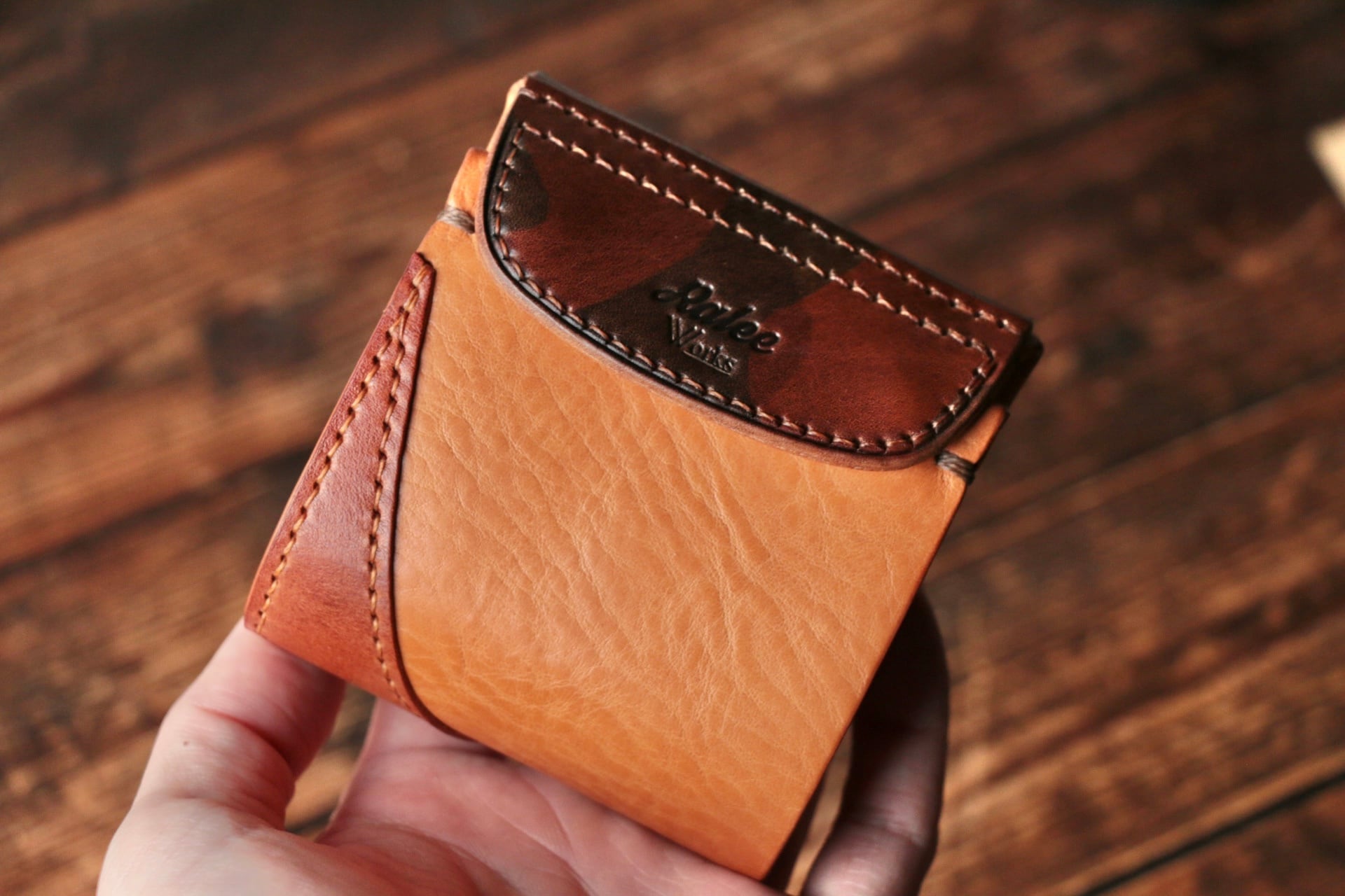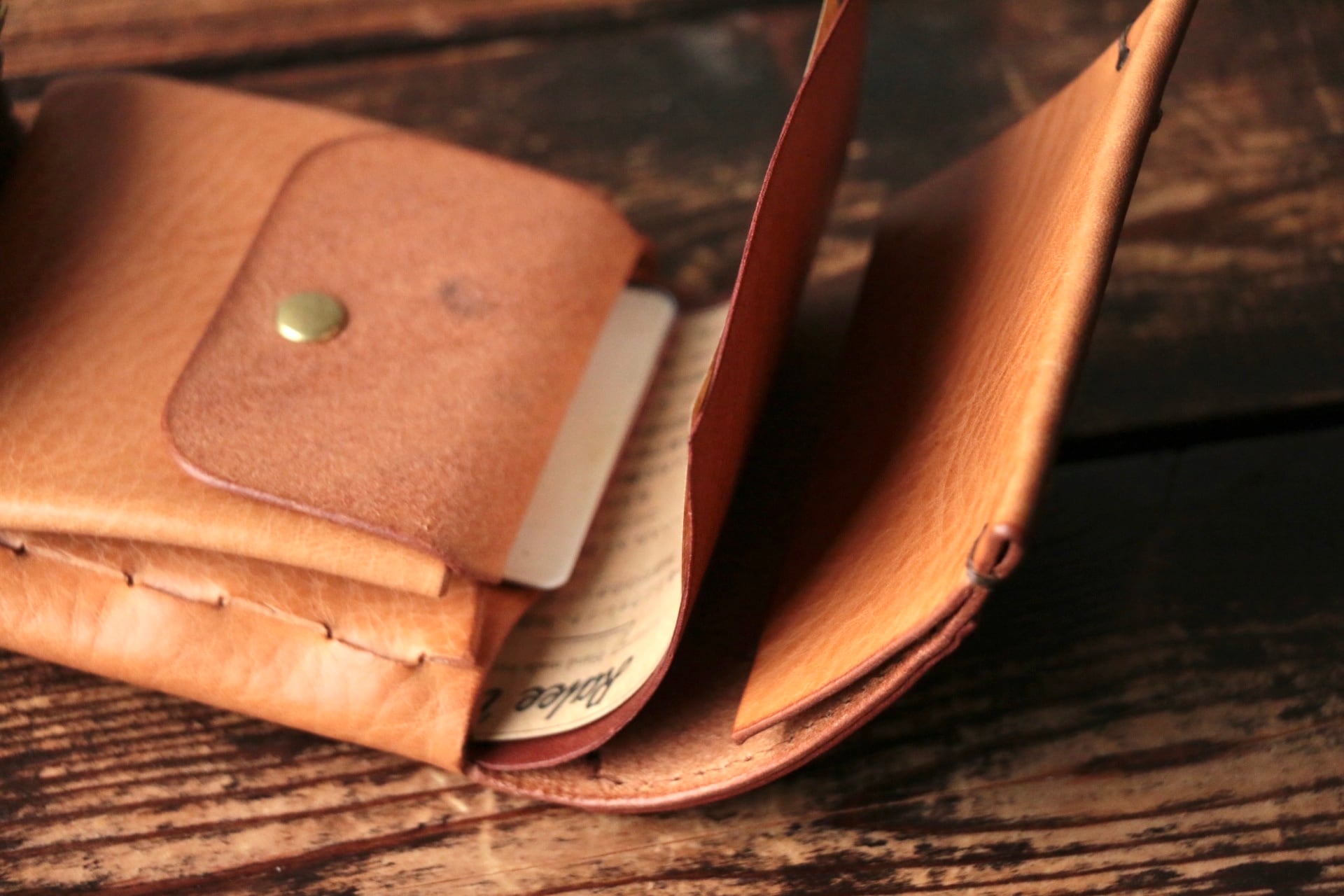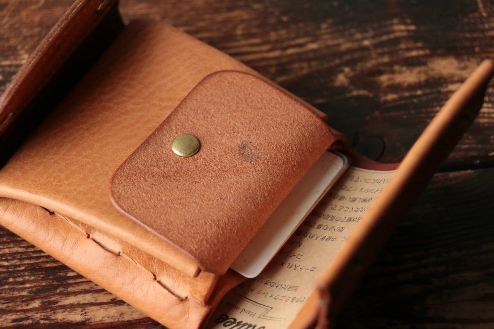 使い始めは革が硬くカードの出し入れやフタが固く感じられますが、使い込む事で徐々に馴染んでいきます。
