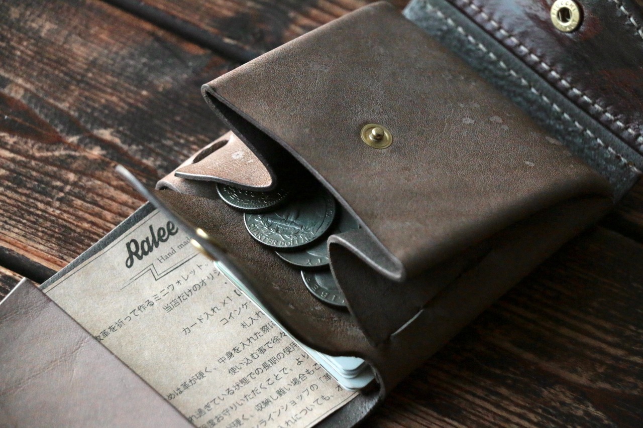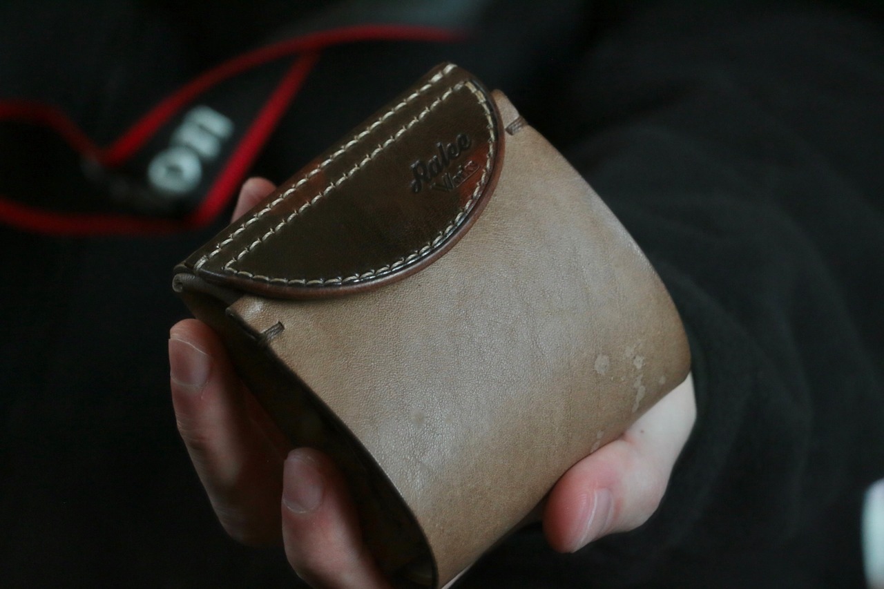 使い始めは革が硬くカードの出し入れやフタが固く感じられますが、使い込む事で徐々に馴染んでいきます。