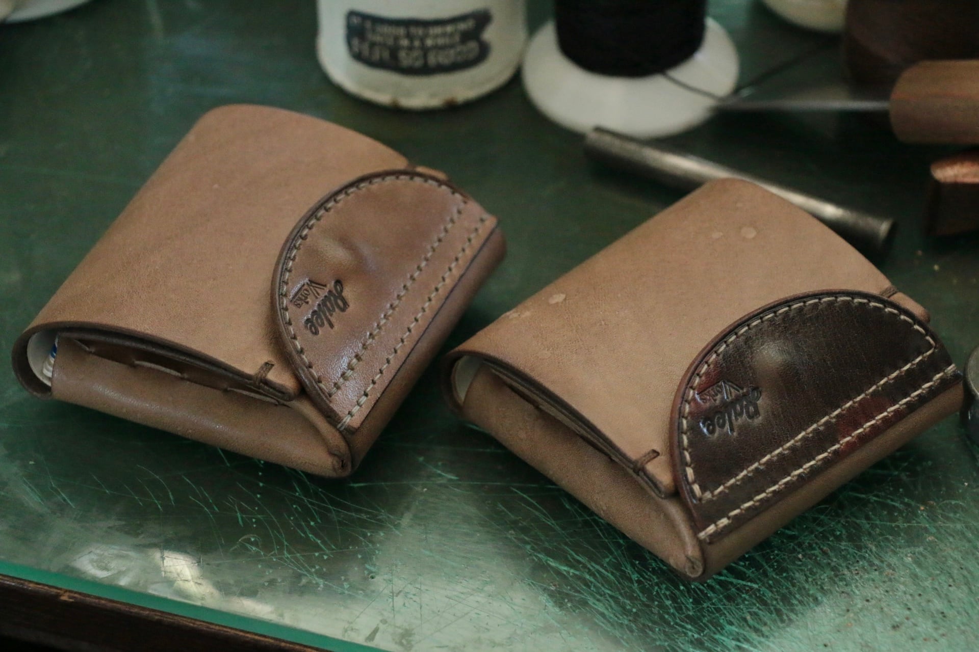 革を折り、一つ一つ手作業で作り上げています。使い込む事で、革の経年変化をより深く味わう事が出来ます。