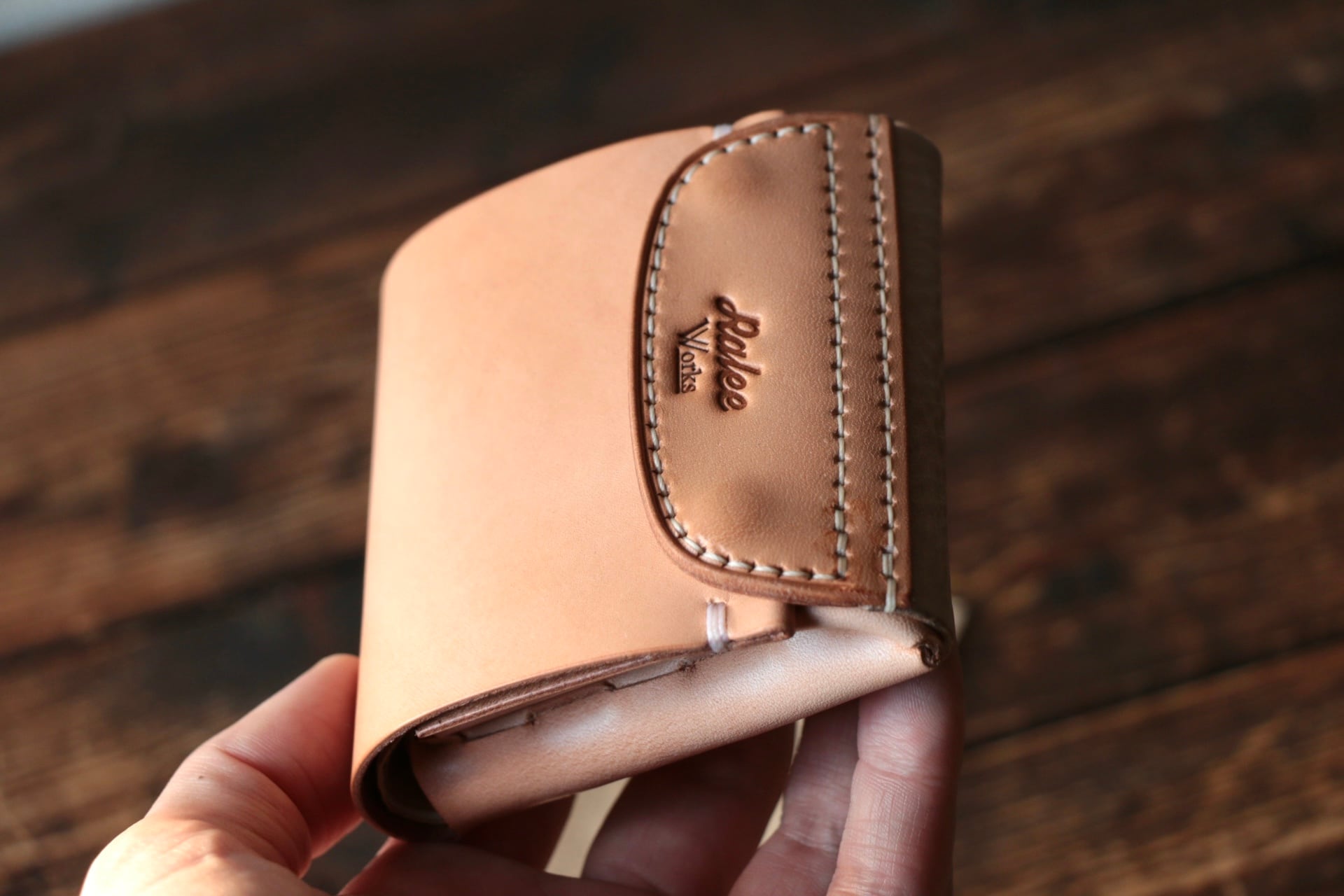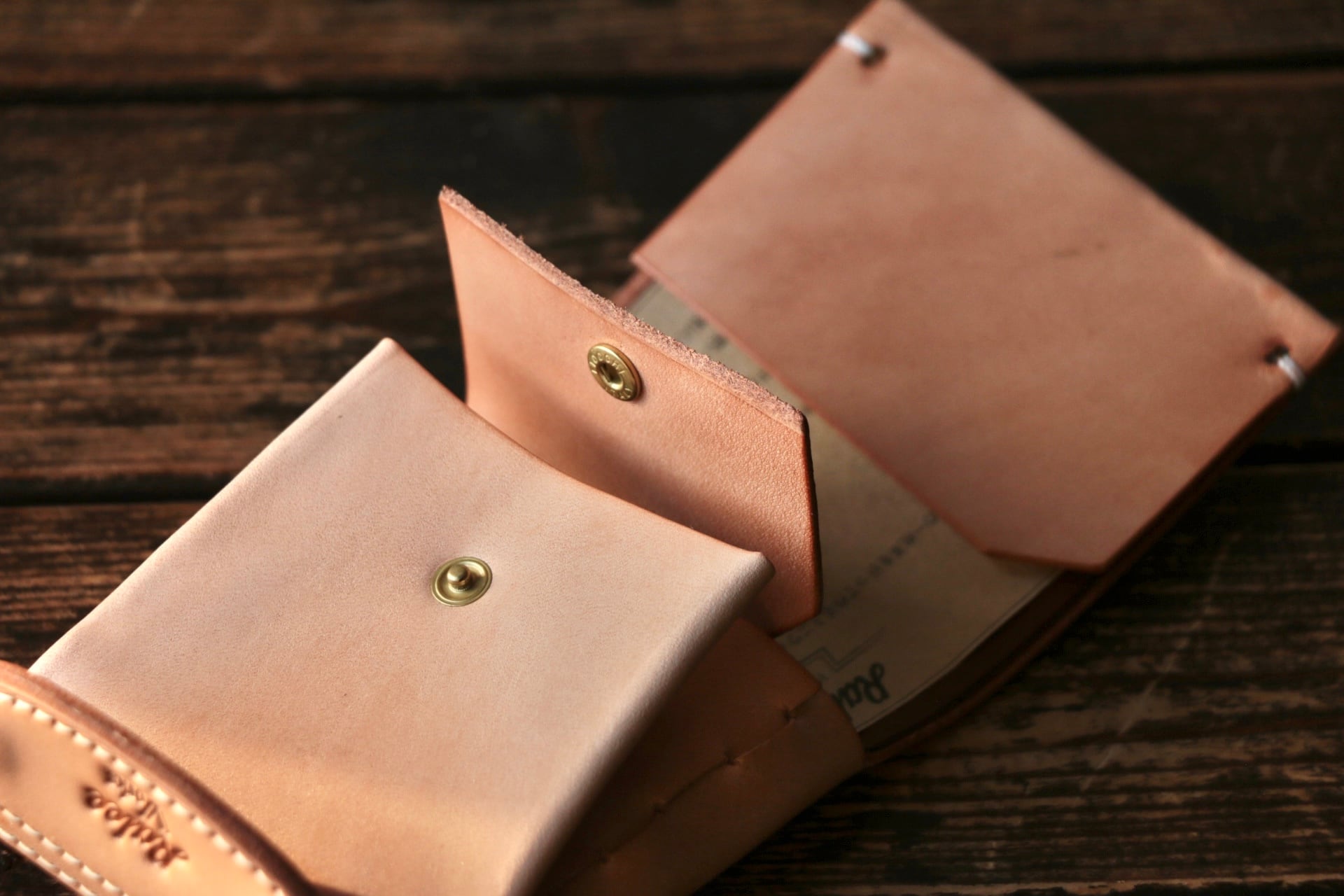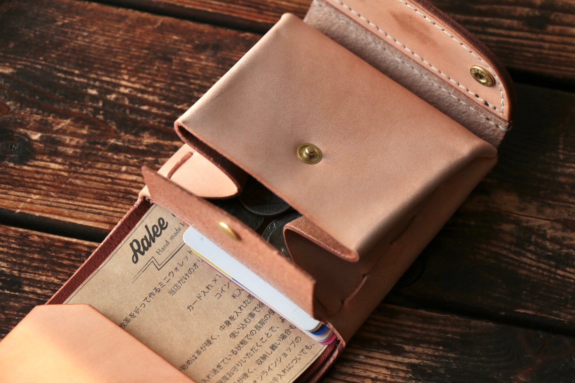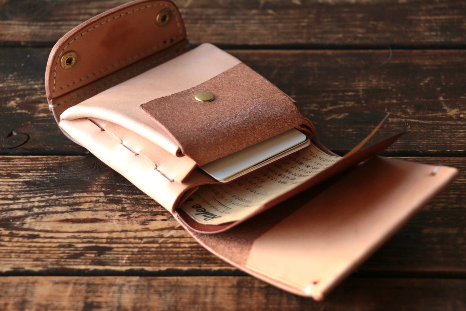 使い始めは革が硬くカードの出し入れやフタが固く感じられますが、使い込む事で徐々に馴染んでいきます。