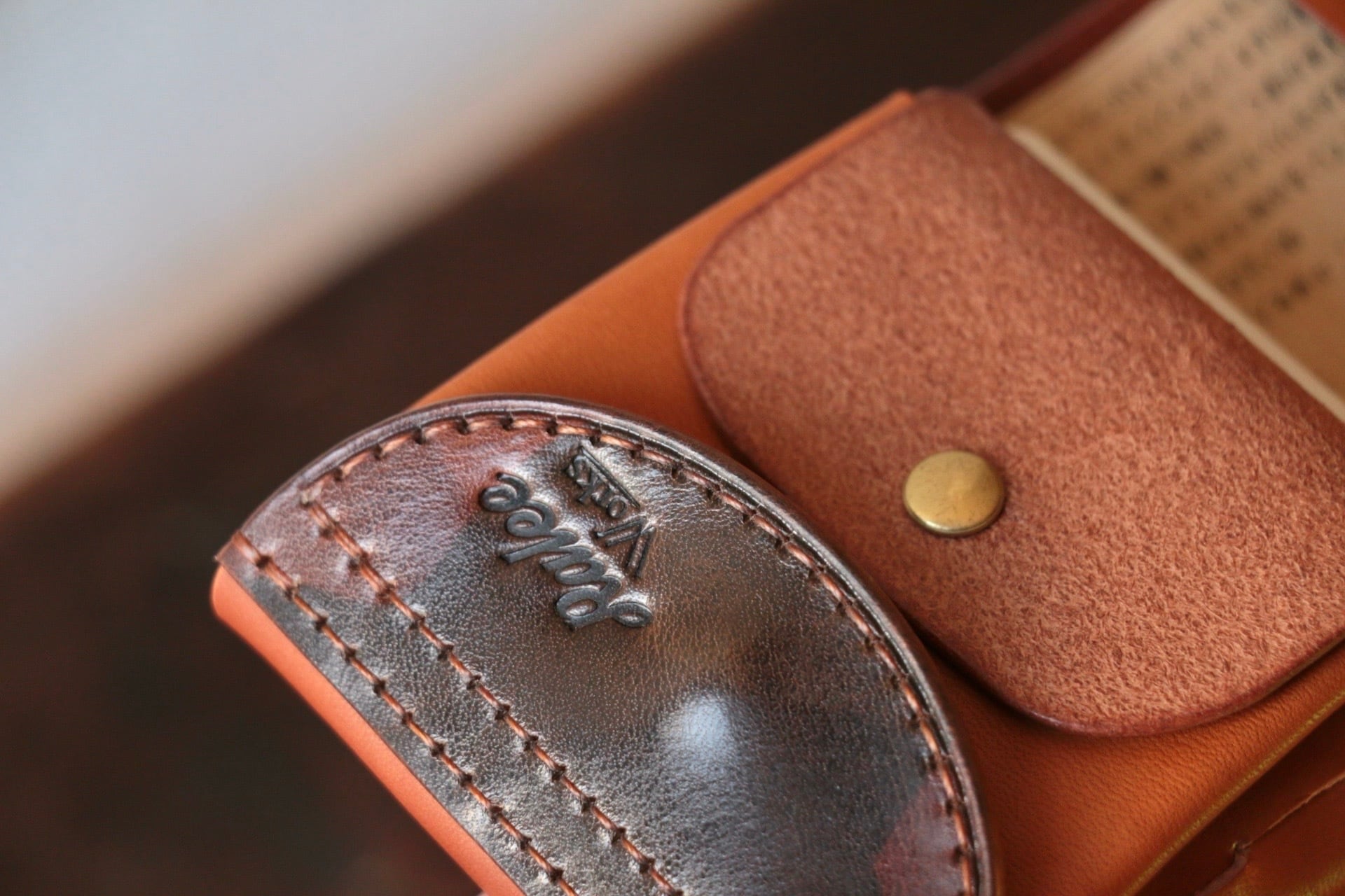 革を折り、一つ一つ手作業で作り上げています。使い込む事で、革の経年変化をより深く味わう事が出来ます。