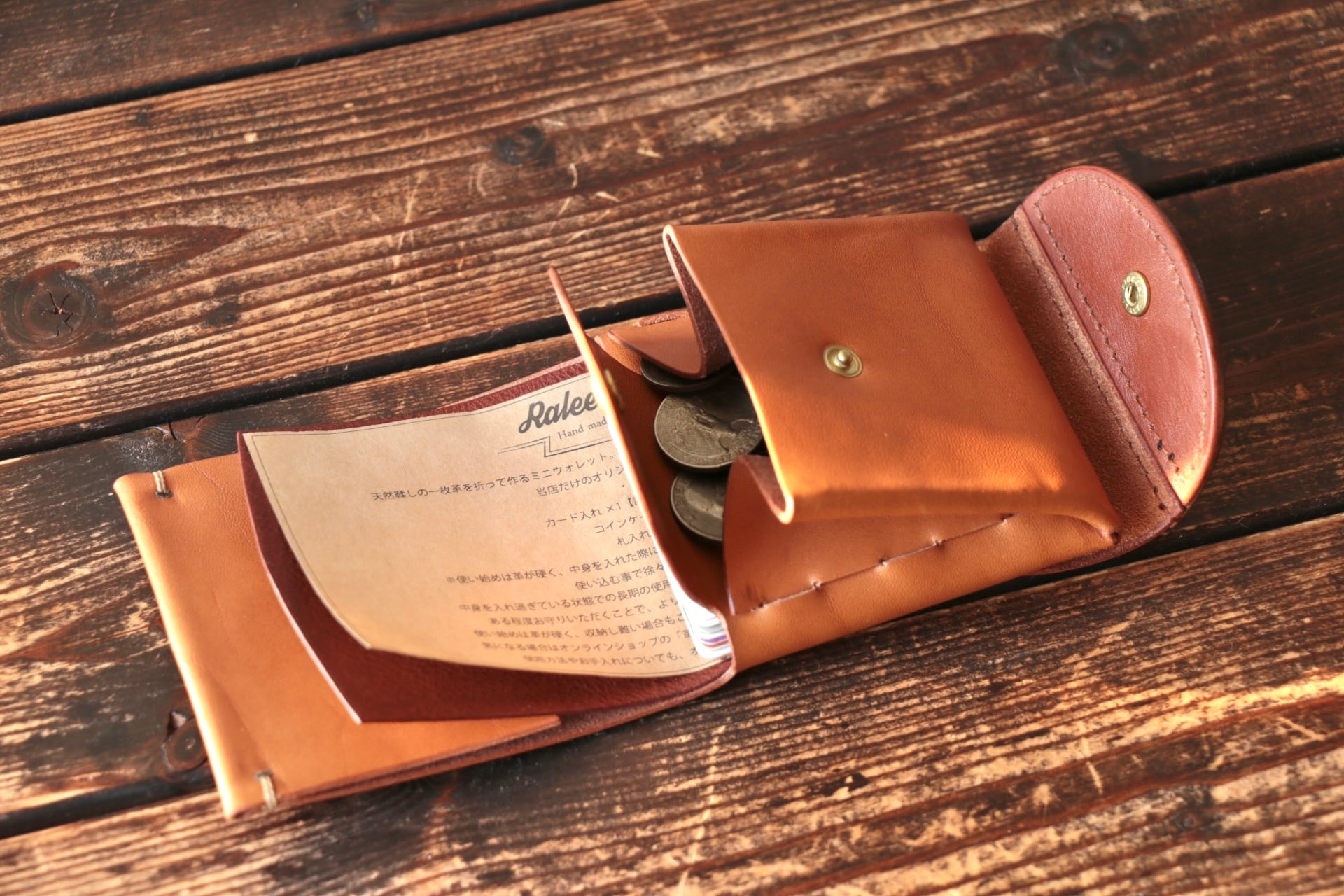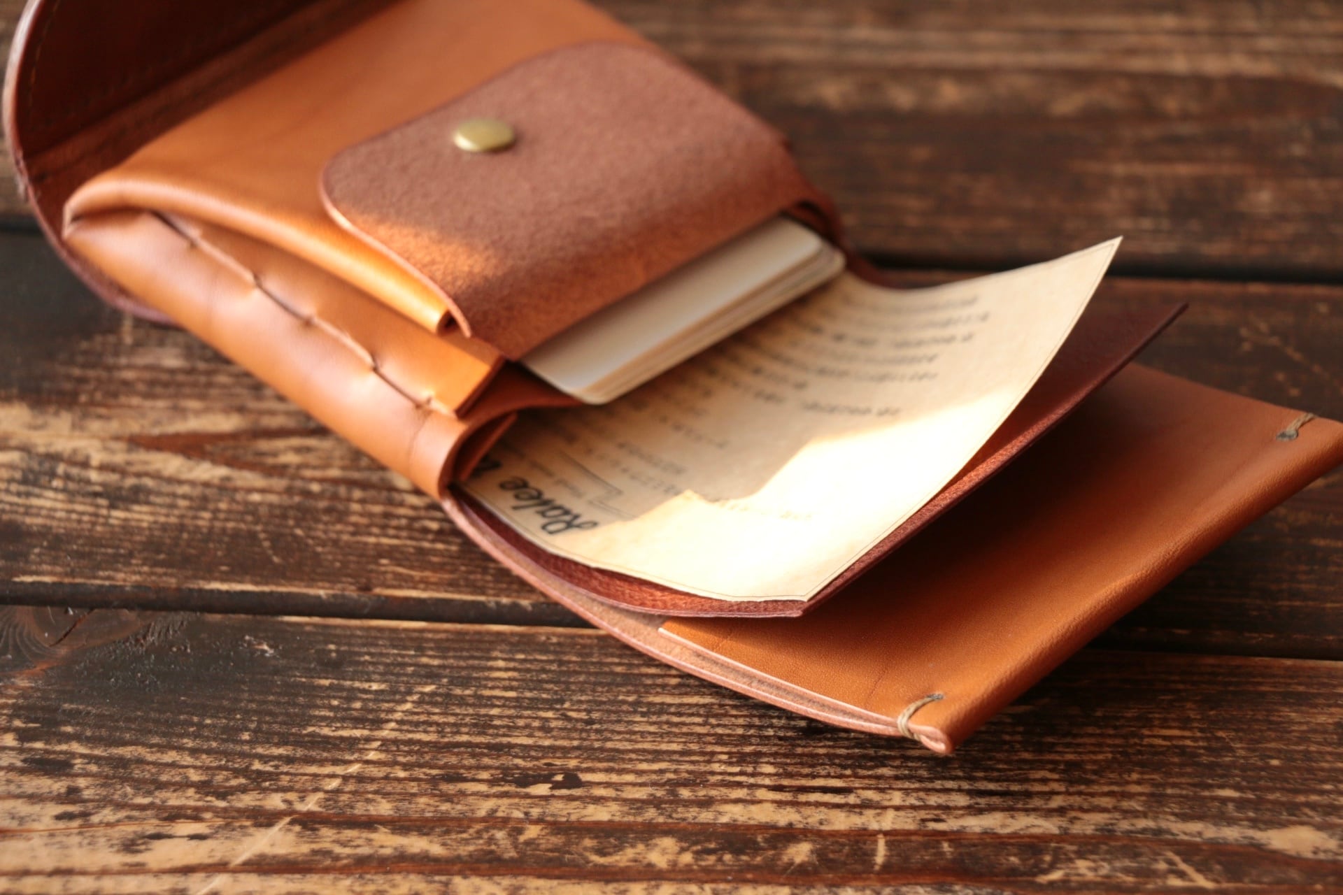 使い始めは革が硬くカードの出し入れやフタが固く感じられますが、使い込む事で徐々に馴染んでいきます。