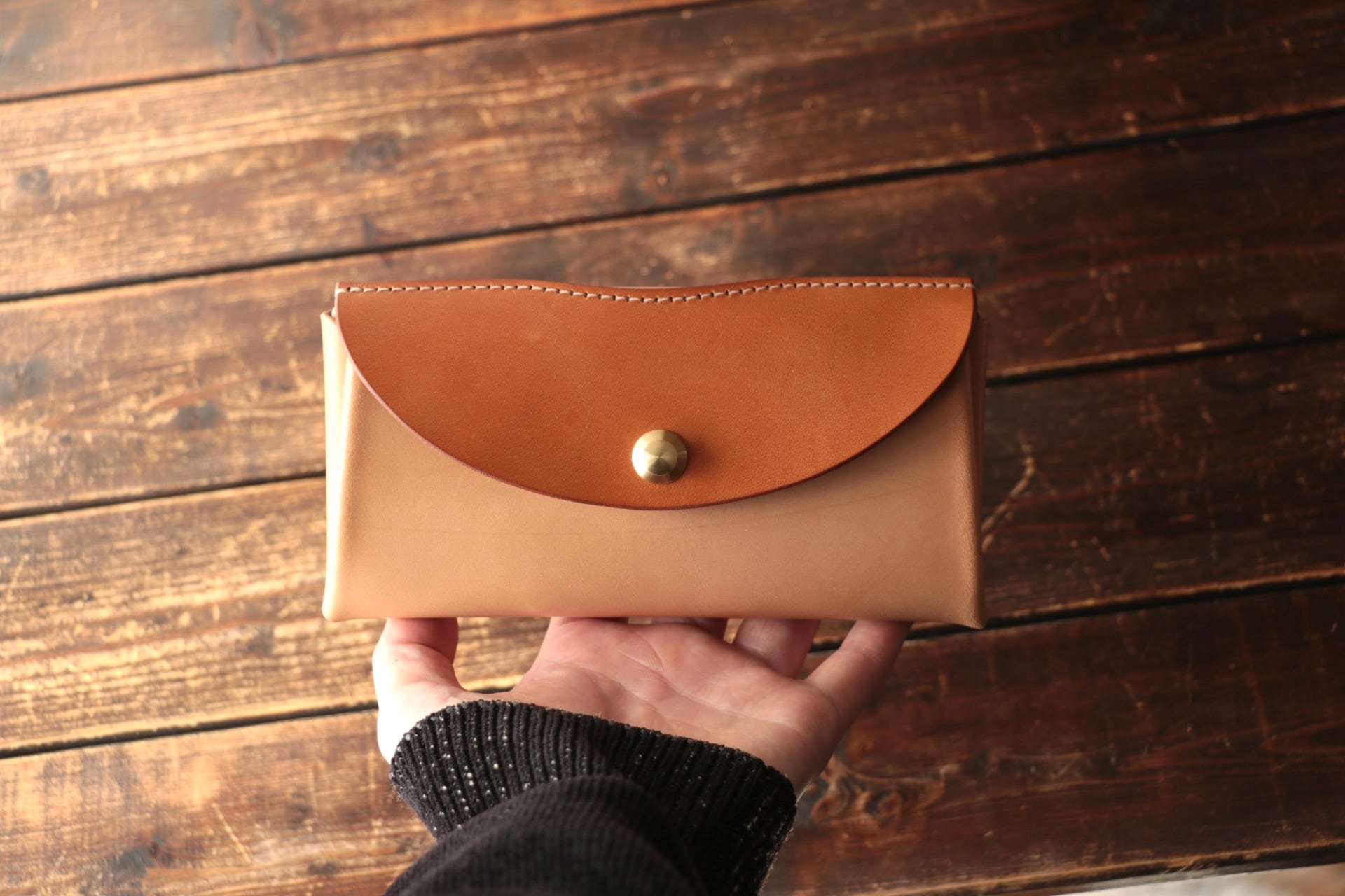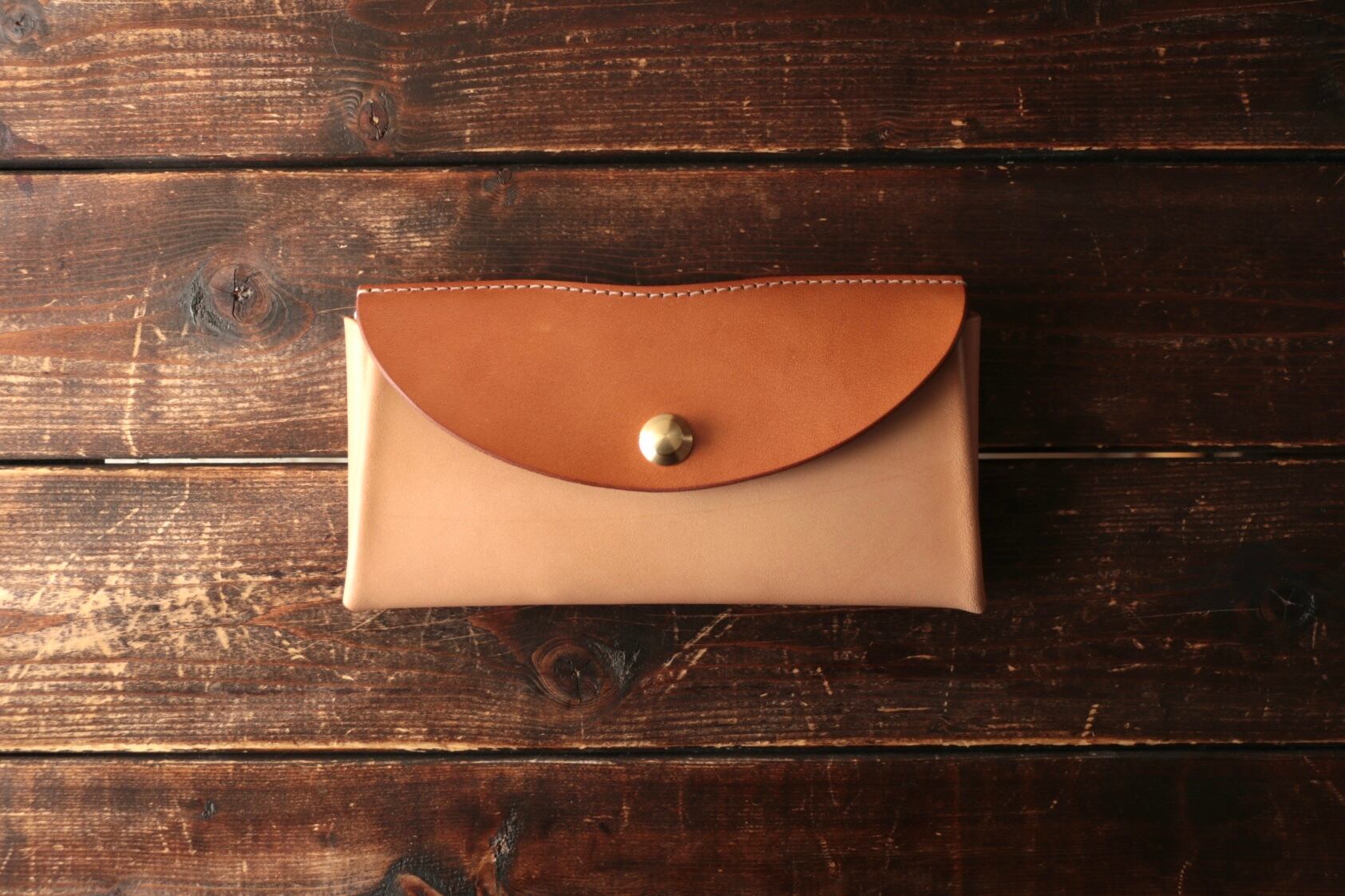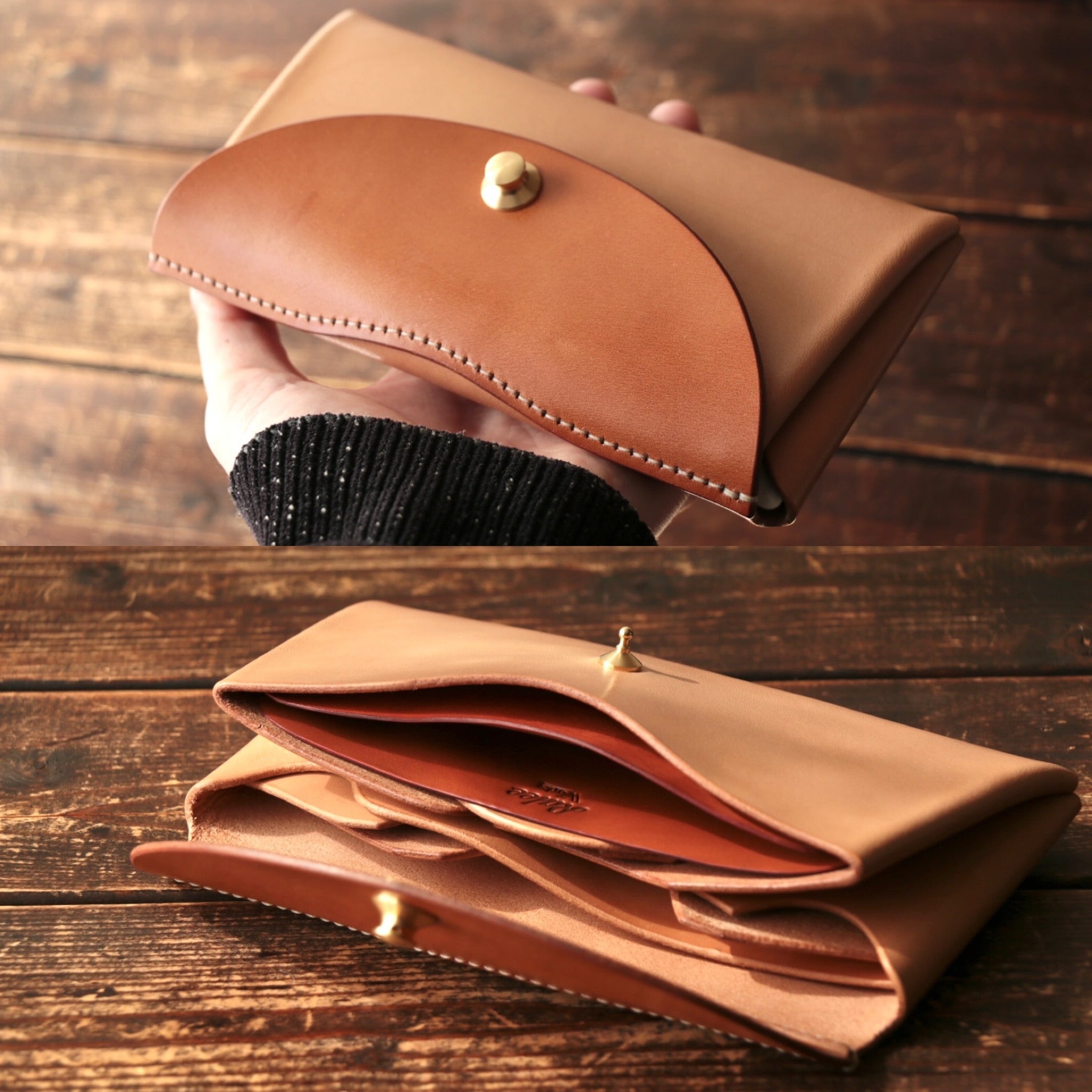 栃木レザー×イタリアンレザー。フタ部分が栃木レザーです。