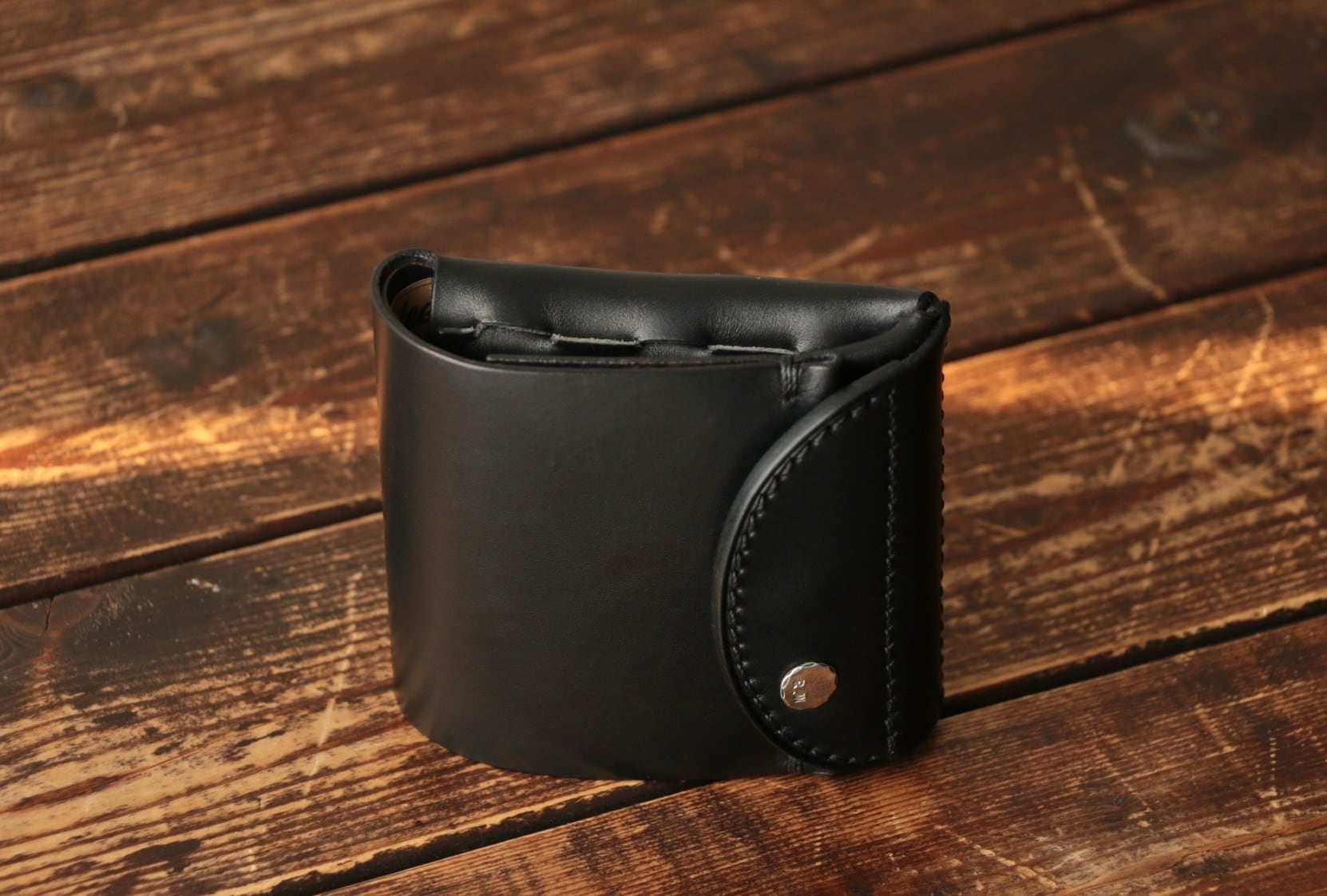 使い始めは革が硬くカードの出し入れやフタが固く感じられますが、使い込む事で徐々に馴染んでいきます。