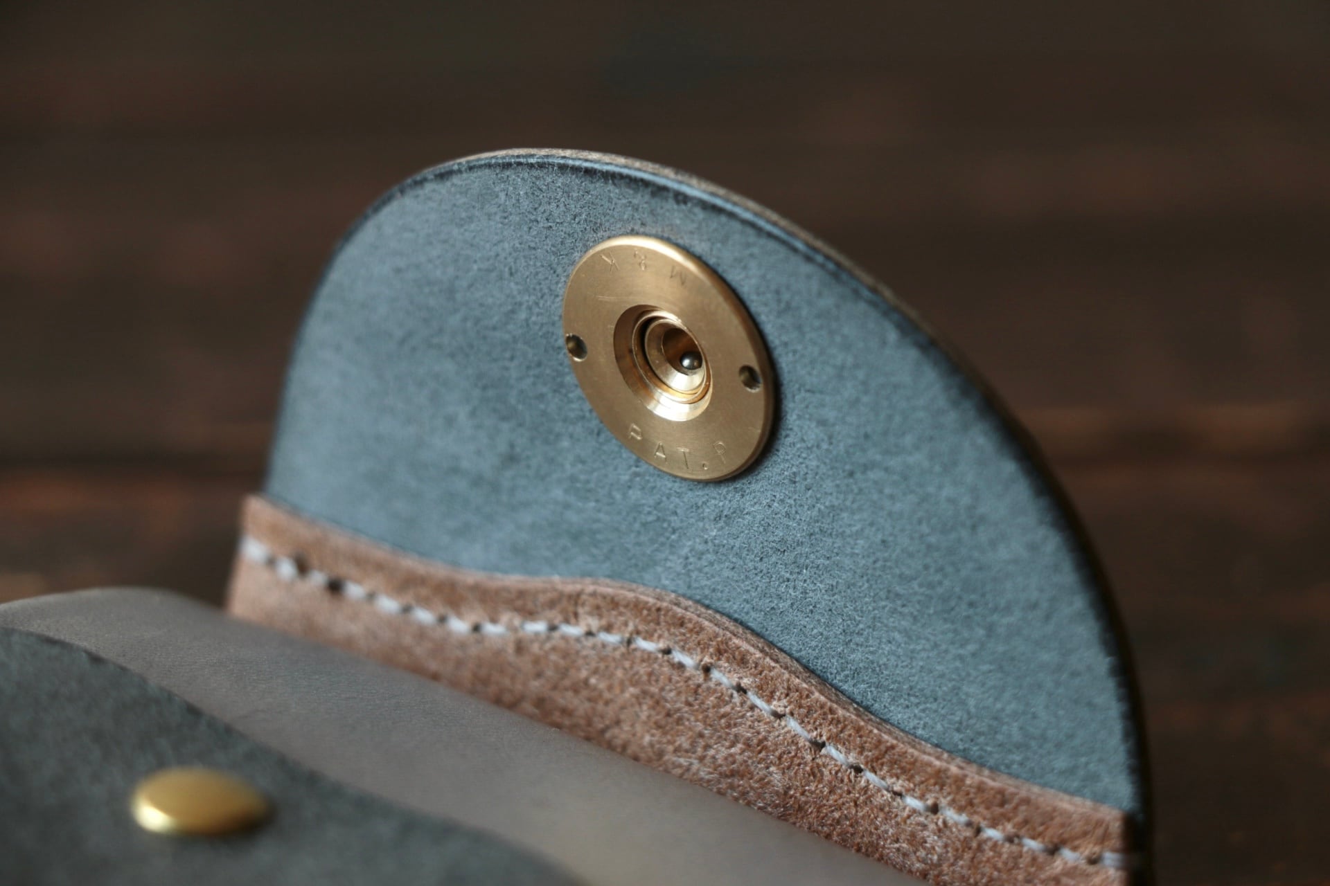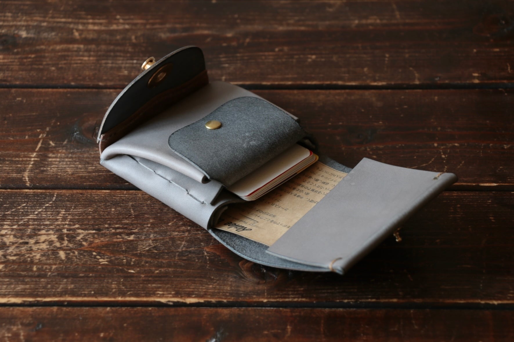 一枚革を折って作るお財布をベースにフラップを取り入れたデザインです。