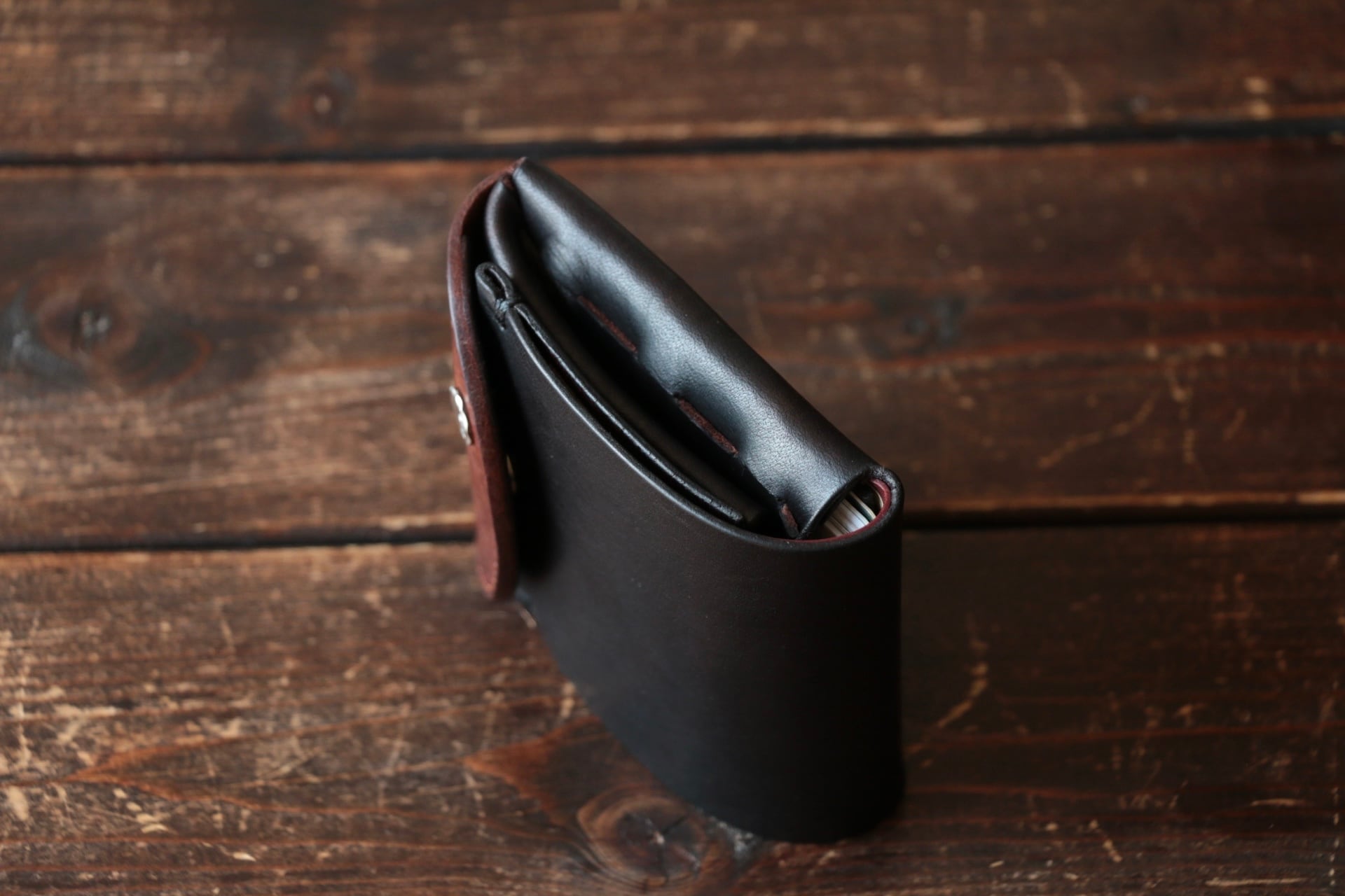 使い始めは革が硬くカードの出し入れやフタが固く感じられますが、使い込む事で徐々に馴染んでいきます。