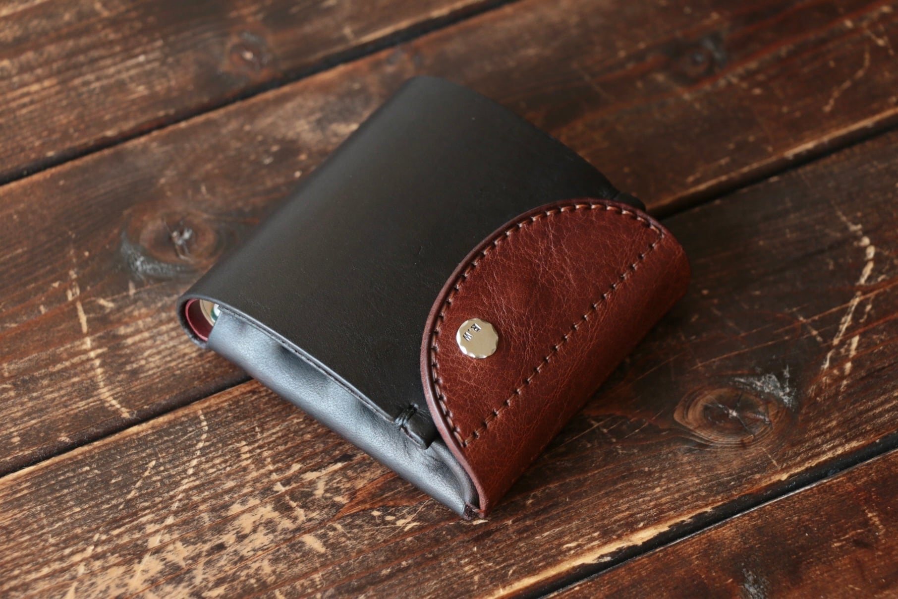 一枚革を折って作るお財布をベースにフラップを取り入れたデザインです。