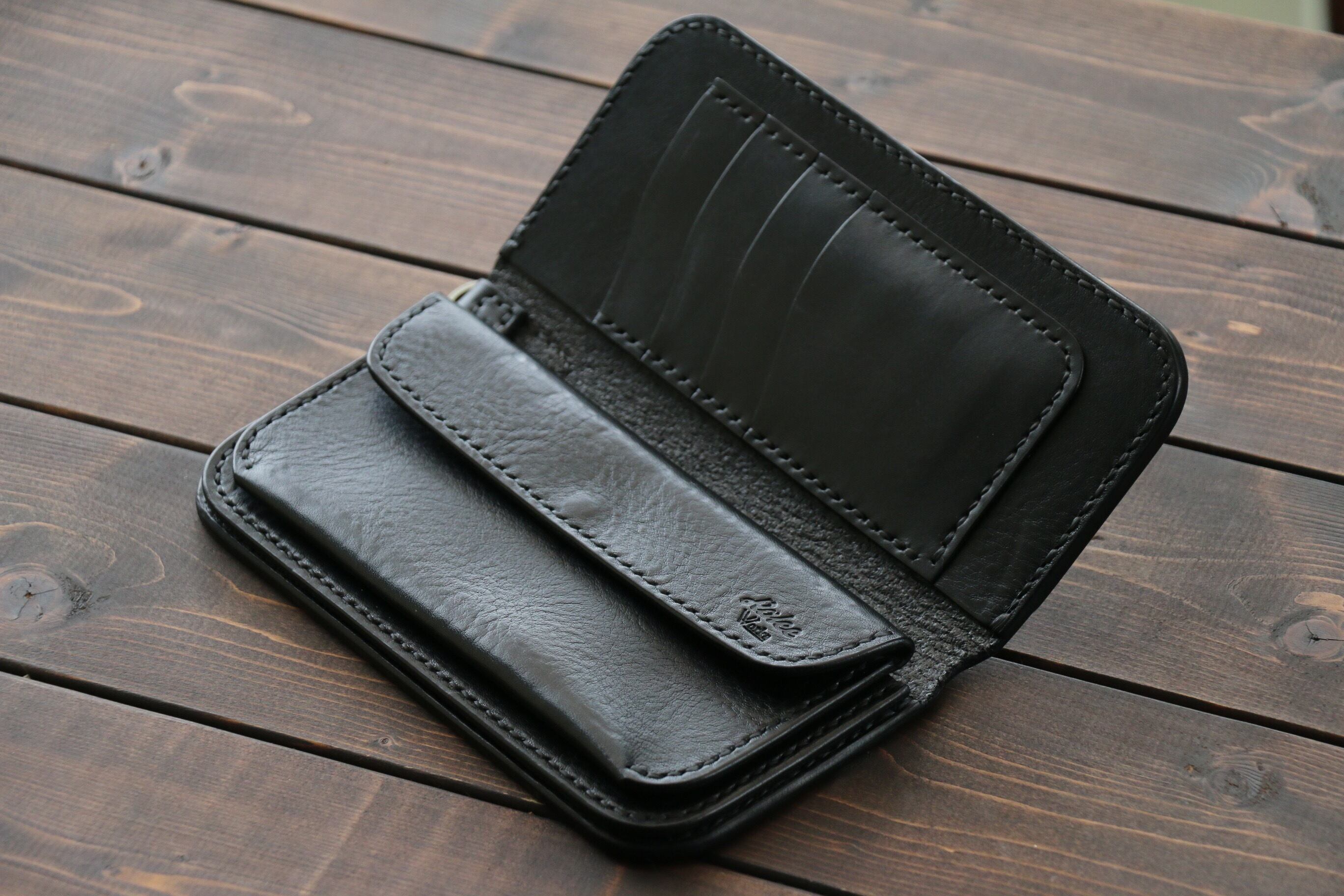 イーグルデザイン飾り縫いのロングウォレット。総手縫いで製作するオールハンドメイド商品です。