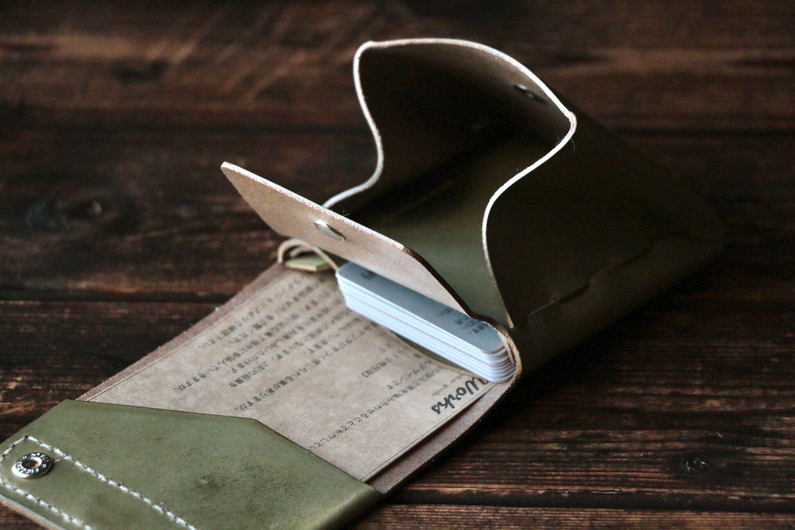 使い始めは革が硬くカードの出し入れやフタが固く感じられますが、使い込む事で徐々に馴染んでいきます。