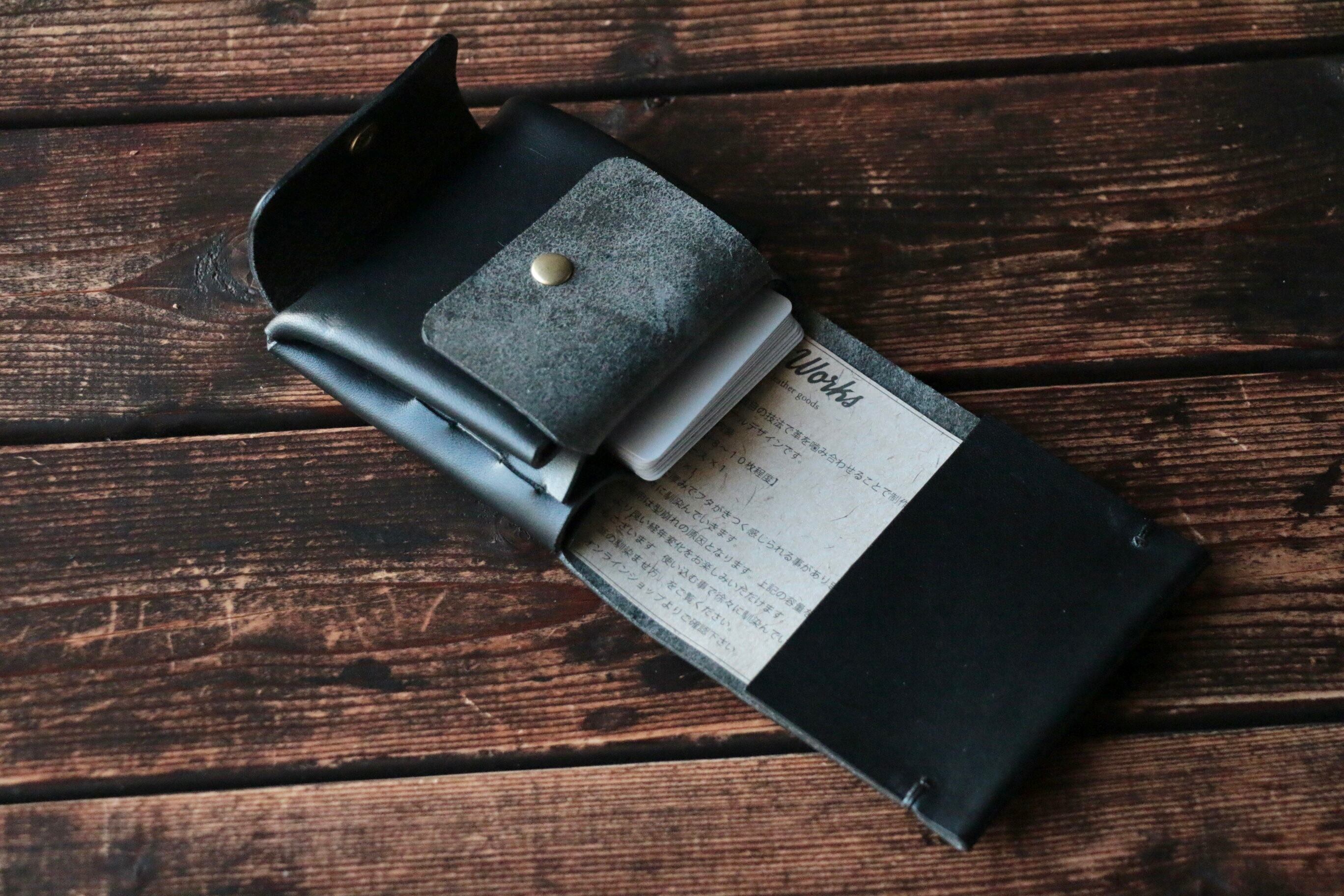 使い始めは革が硬くカードの出し入れやフタが固く感じられますが、使い込む事で徐々に馴染んでいきます。
