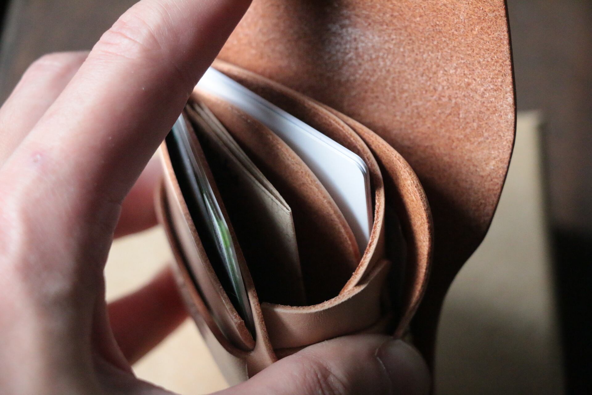 使い始めは革が硬くカードの出し入れやフタが固く感じられますが、使い込む事で徐々に馴染んでいきます。