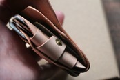 見た目以上に革を重ねているので、通常のパスケースの2倍程度革を使用しております。