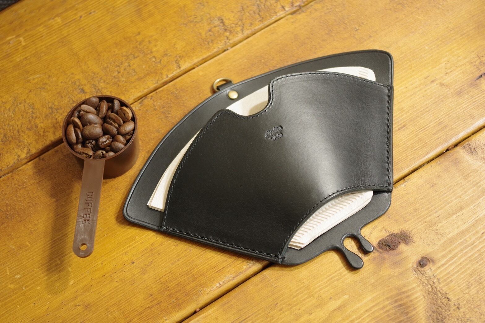 コーヒードリップを模したデザインがインテリアとしても目を引く、壁掛けのコーヒーフィルターケースです。