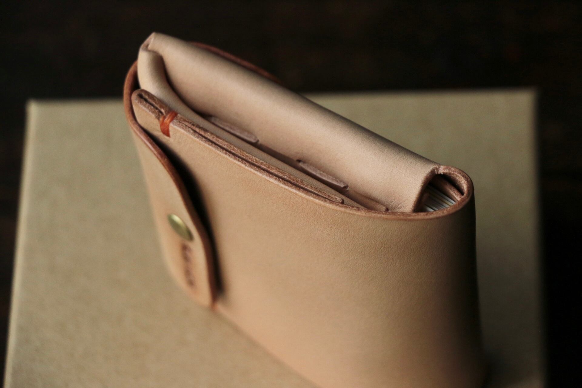 使い始めは革が硬くカードの出し入れやフタが固く感じられますが、使い込む事で徐々に馴染んでいきます。
