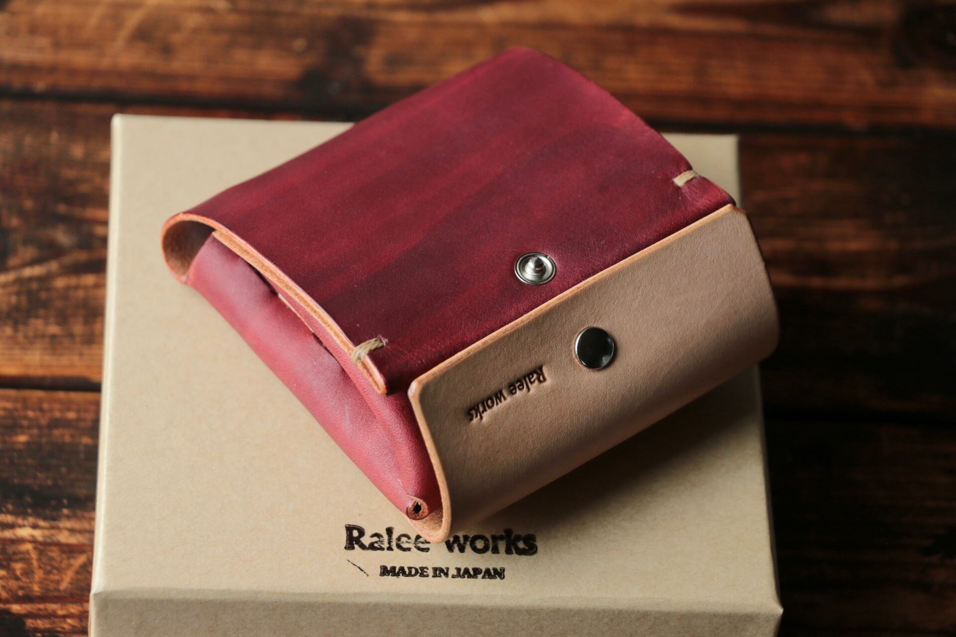 姫路レザー手染めのレッドブラウン。