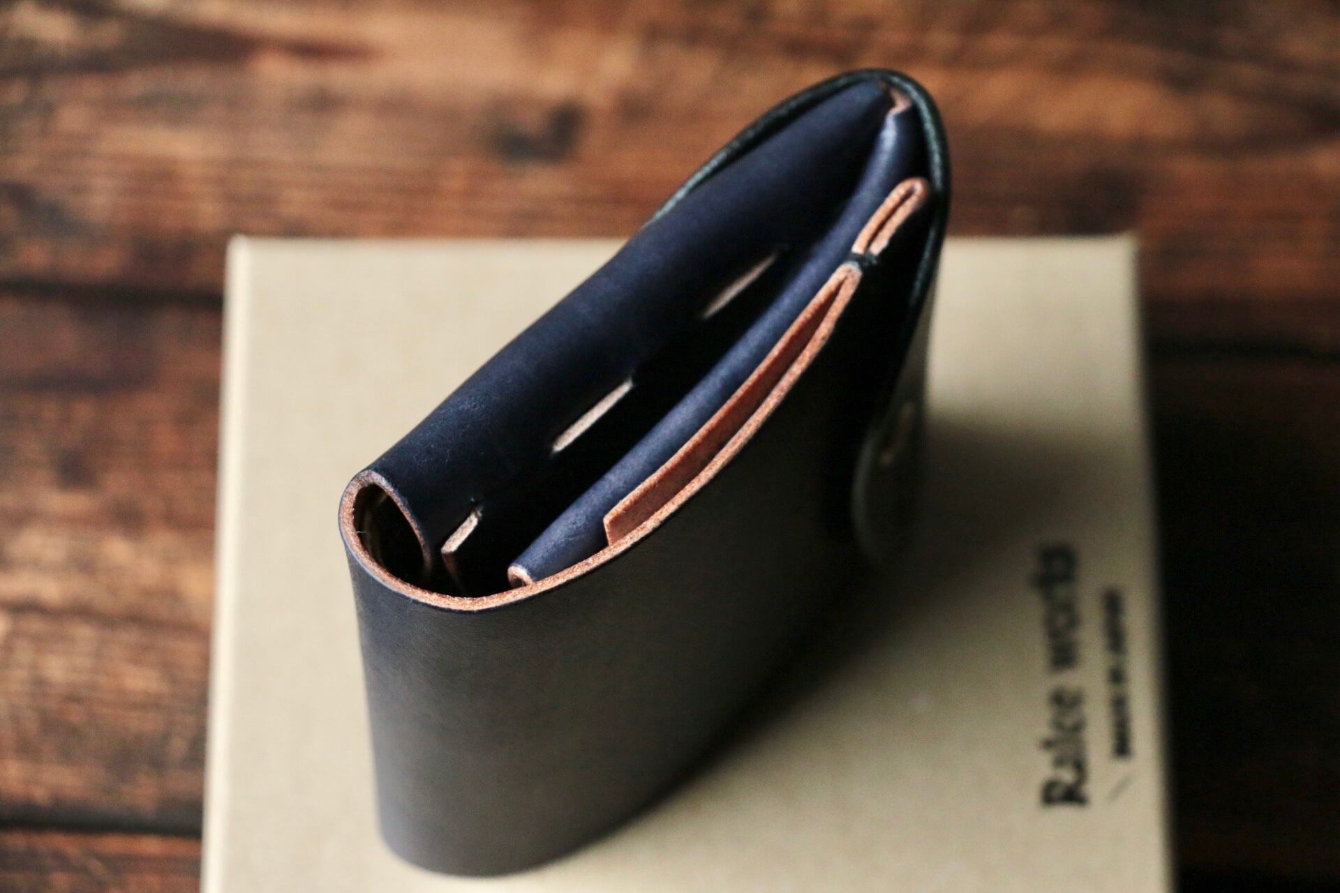 使い始めは革が硬くカードの出し入れやフタが固く感じられますが、使い込む事で徐々に馴染んでいきます。