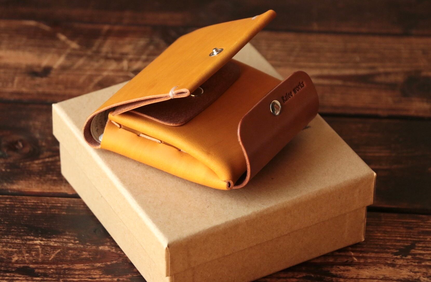 使い始めは革が硬くカードの出し入れやフタが固く感じられますが、使い込む事で徐々に馴染んでいきます。