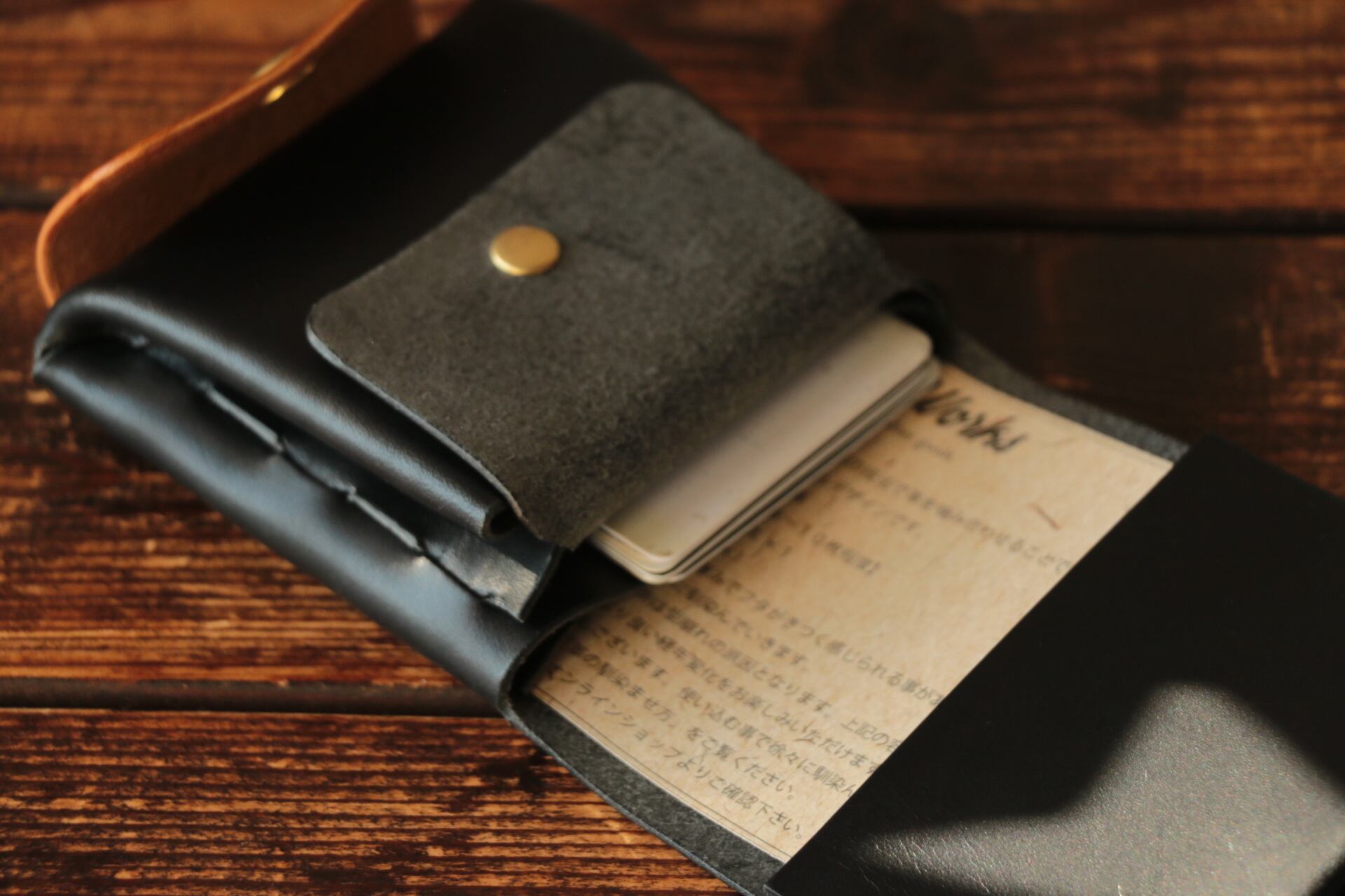 使い始めは革が硬くカードの出し入れやフタが固く感じられますが、使い込む事で徐々に馴染んでいきます。