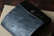 元はナチュラルカラーの姫路レザーに手染めでネイビーに染めた後、更にシルバーカラーにむら染めしました。