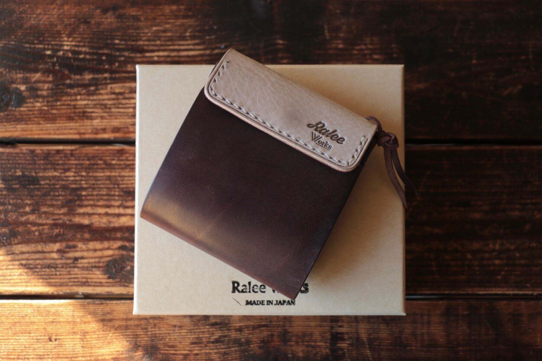 一枚革を折って作るお財布をベースにフラップを取り入れたデザインです。