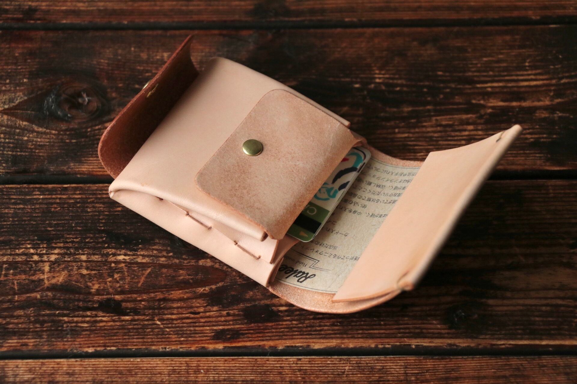 使い始めは革が硬くカードの出し入れやフタが固く感じられますが、使い込む事で徐々に馴染んでいきます。