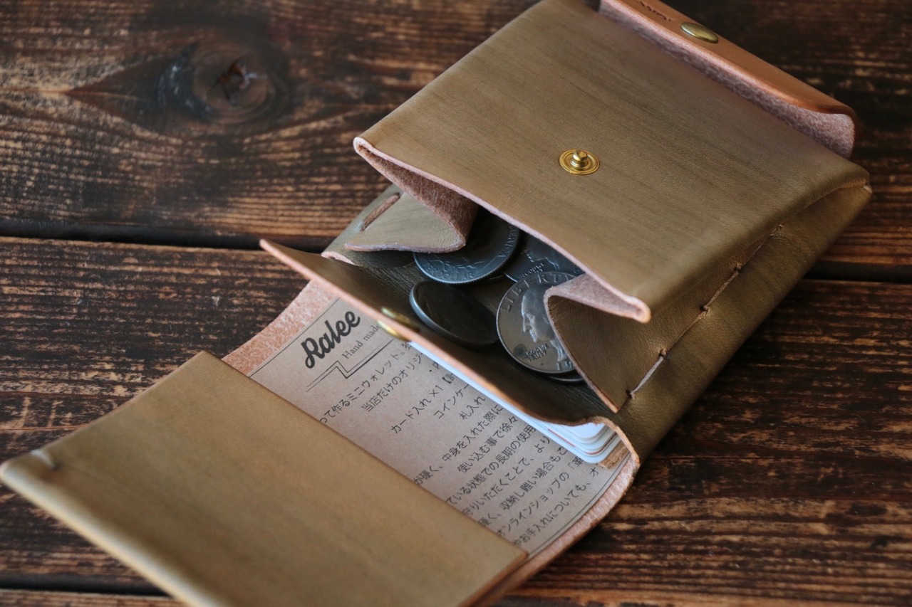 使い始めは革が硬くカードの出し入れやフタが固く感じられますが、使い込む事で徐々に馴染んでいきます。