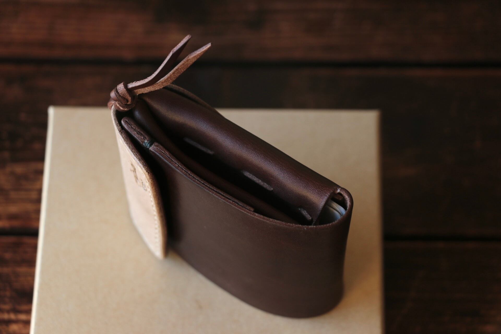 使い始めは革が硬くカードの出し入れやフタが固く感じられますが、使い込む事で徐々に馴染んでいきます。
