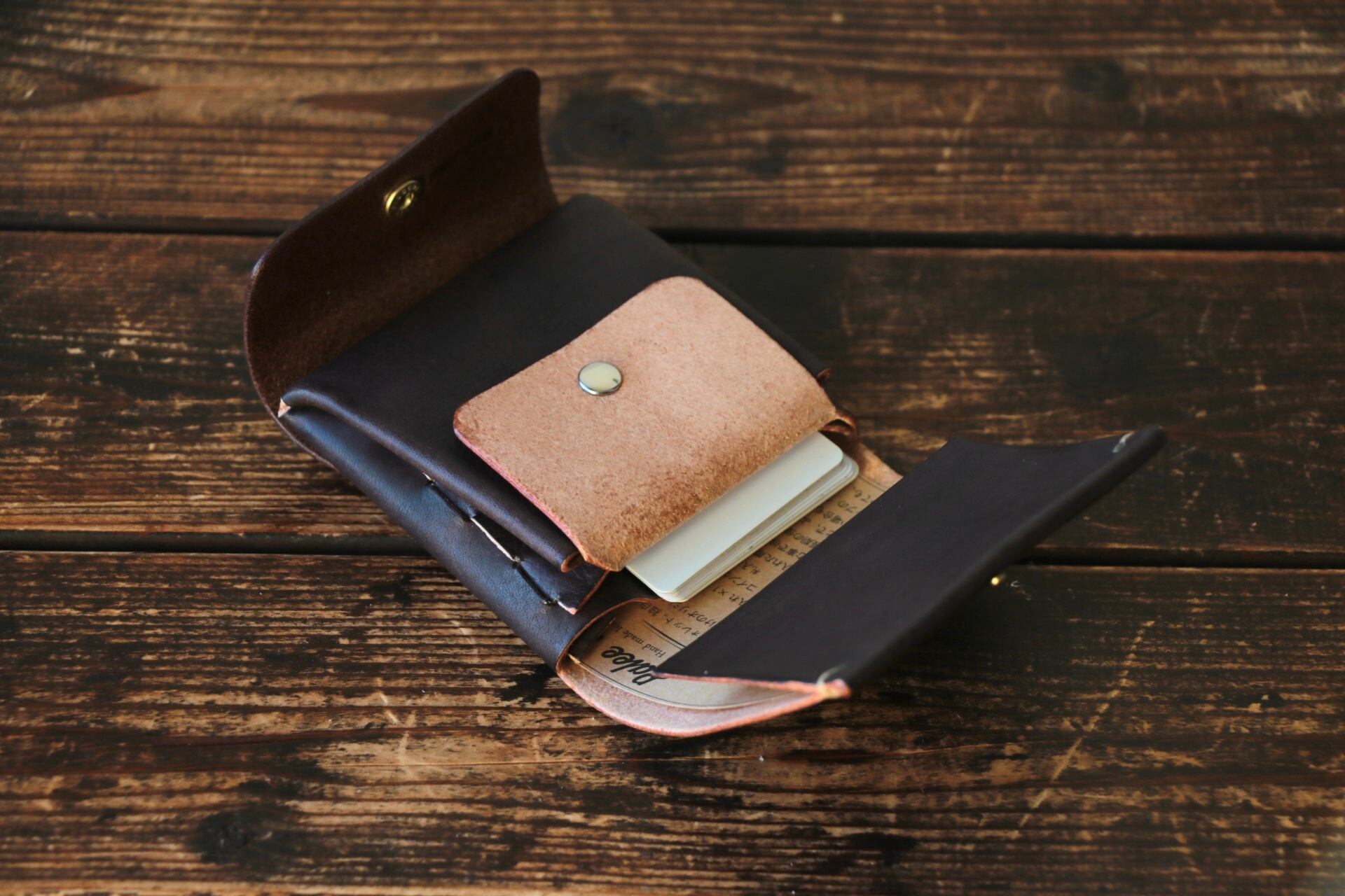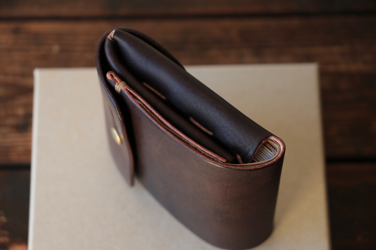 使い始めは革が硬くカードの出し入れやフタが固く感じられますが、使い込む事で徐々に馴染んでいきます。