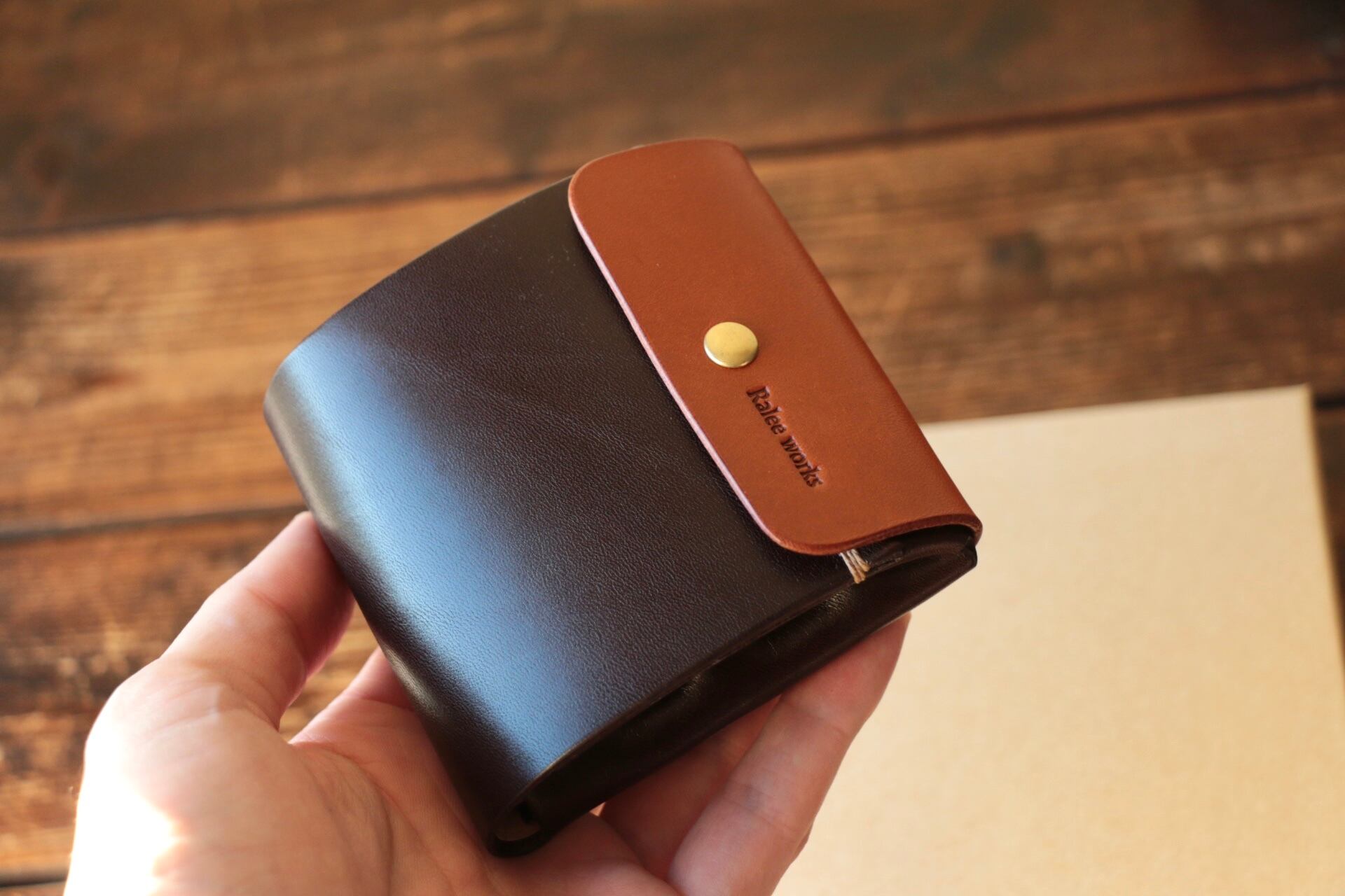 使い始めは革が硬くカードの出し入れやフタが固く感じられますが、使い込む事で徐々に馴染んでいきます。