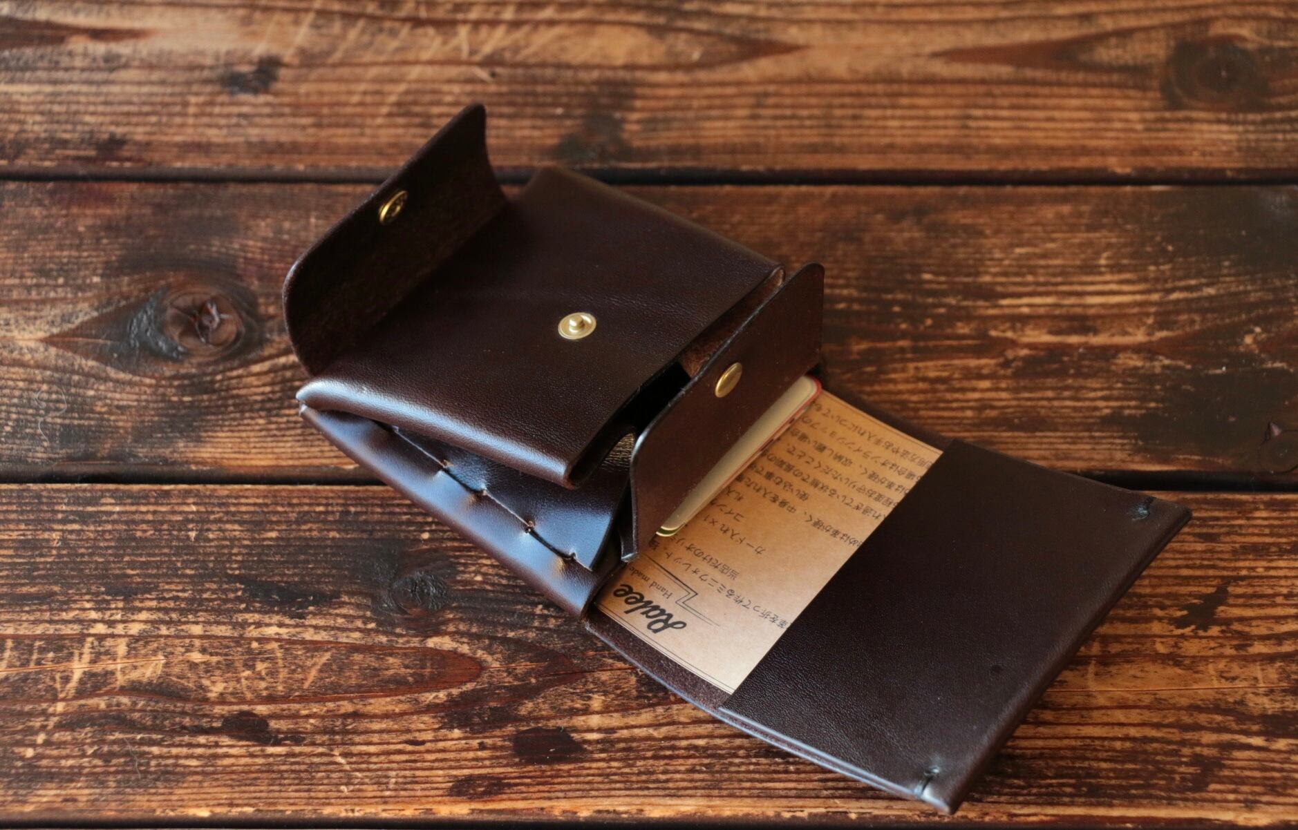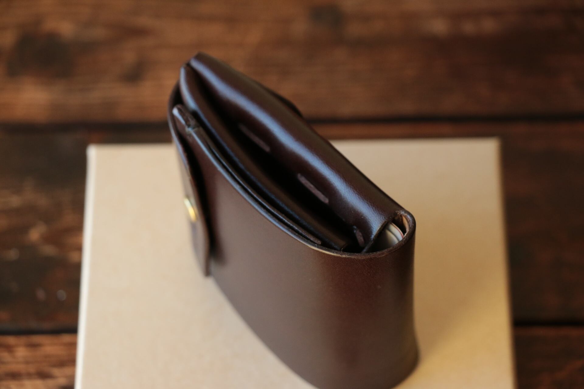 使い始めは革が硬くカードの出し入れやフタが固く感じられますが、使い込む事で徐々に馴染んでいきます。