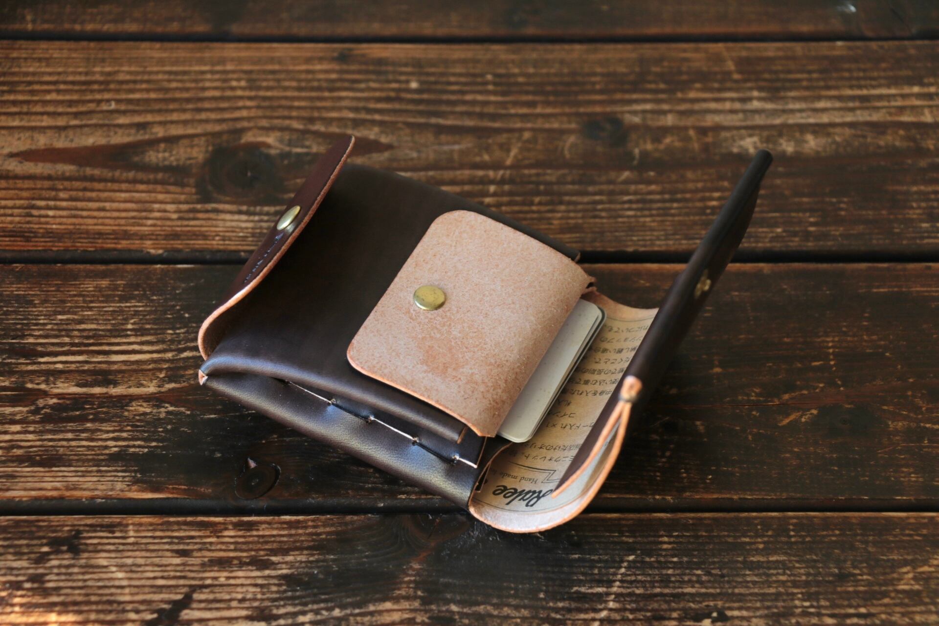使い始めは革が硬くカードの出し入れやフタが固く感じられますが、使い込む事で徐々に馴染んでいきます。