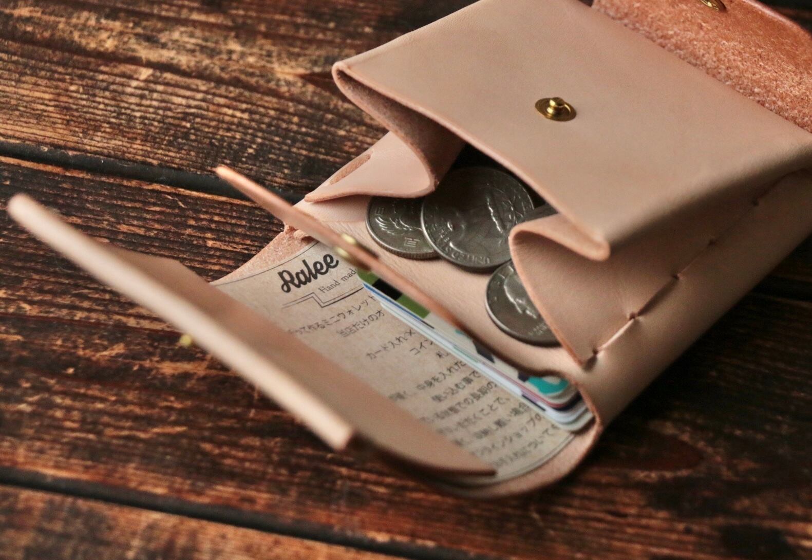 使い始めは革が硬くカードの出し入れやフタが固く感じられますが、使い込む事で徐々に馴染んでいきます。