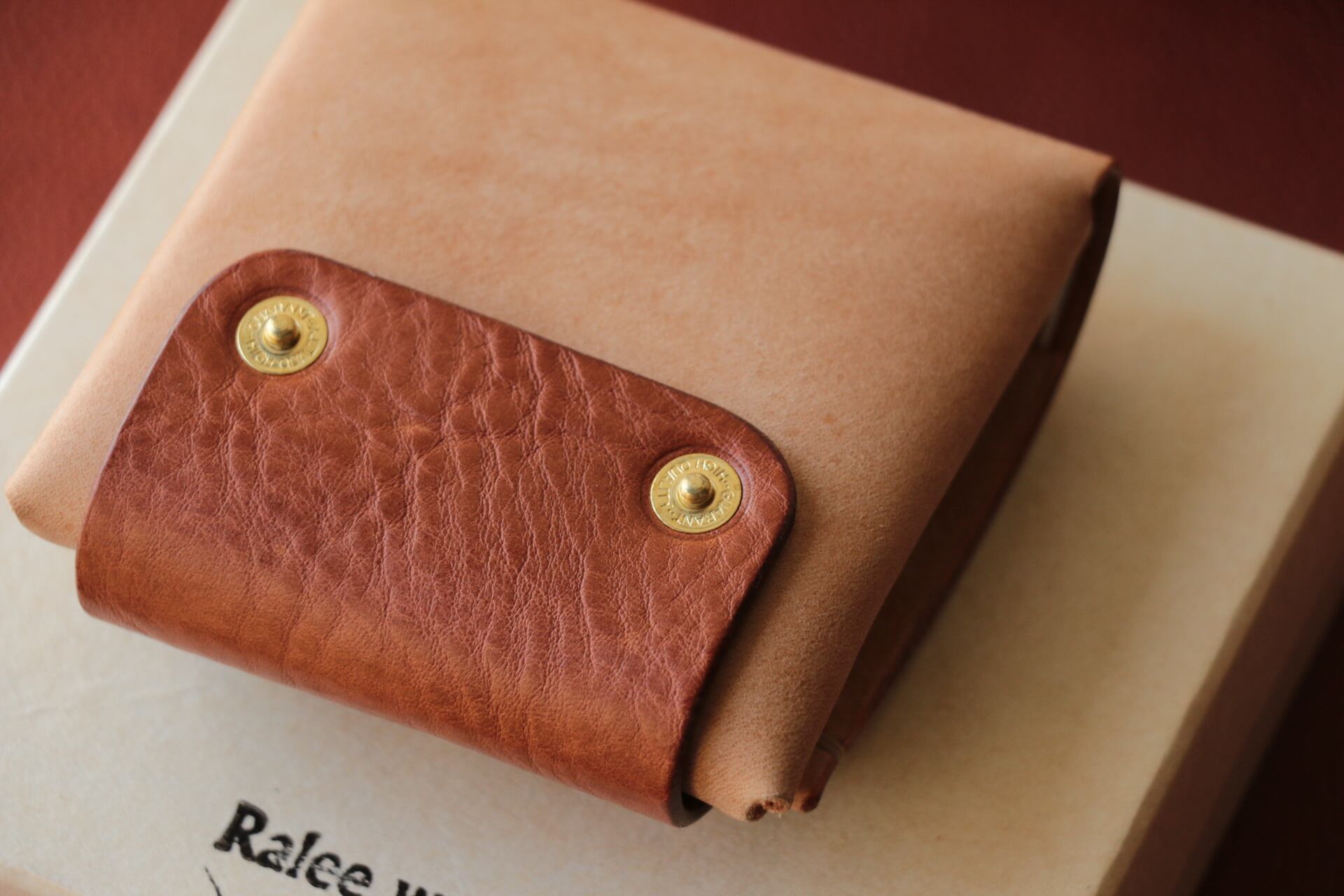 革を折り、一つ一つ手作業で作り上げています。使い込む事で、革の経年変化をより深く味わう事が出来ます。