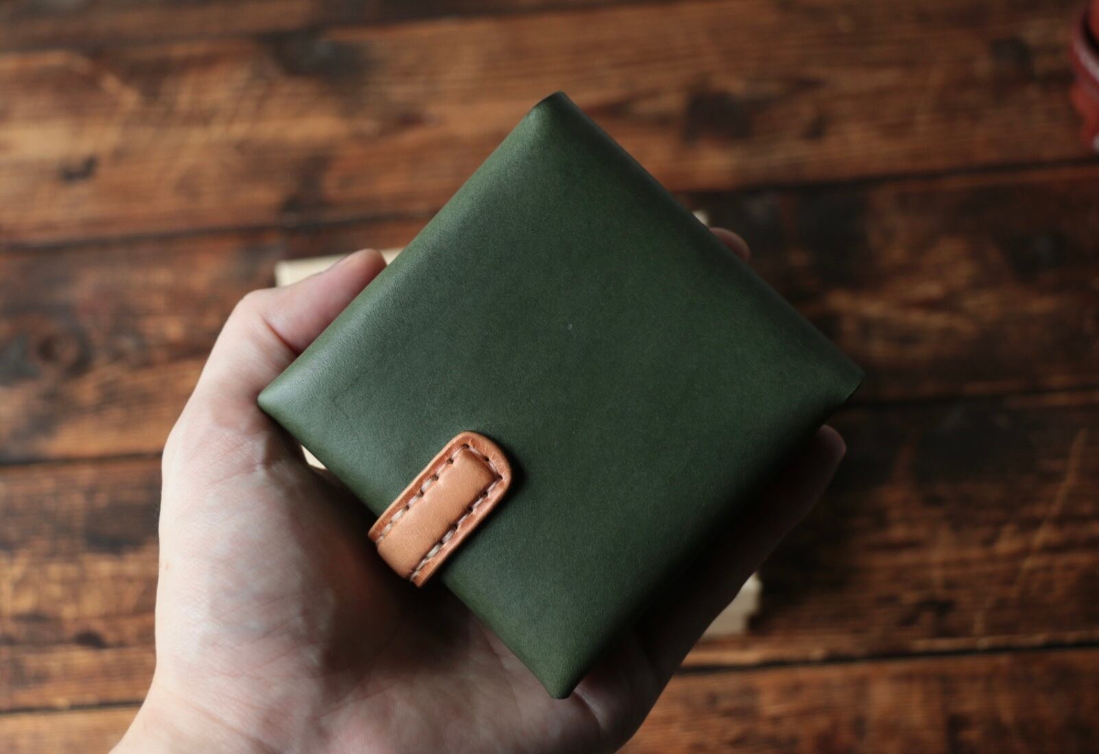 使い始めは革が硬くカードの出し入れやフタが固く感じられますが、使い込む事で徐々に馴染んでいきます。