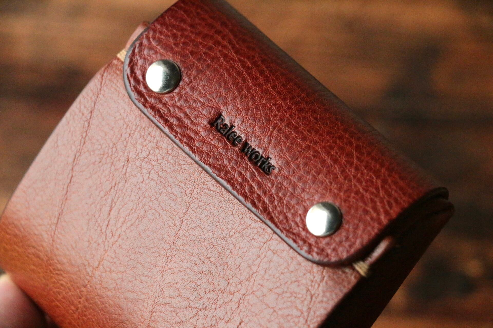 革を折り、一つ一つ手作業で作り上げています。使い込む事で、革の経年変化をより深く味わう事が出来ます。