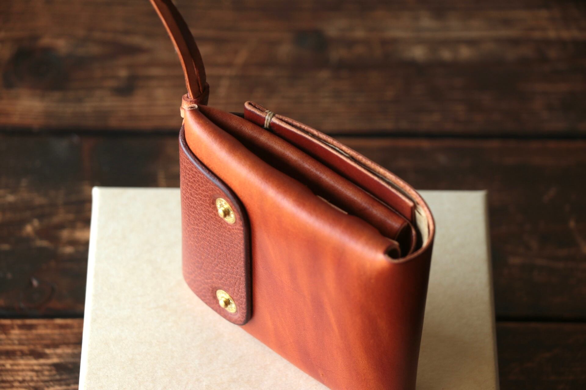 革を折り、一つ一つ手作業で作り上げています。使い込む事で、革の経年変化をより深く味わう事が出来ます。