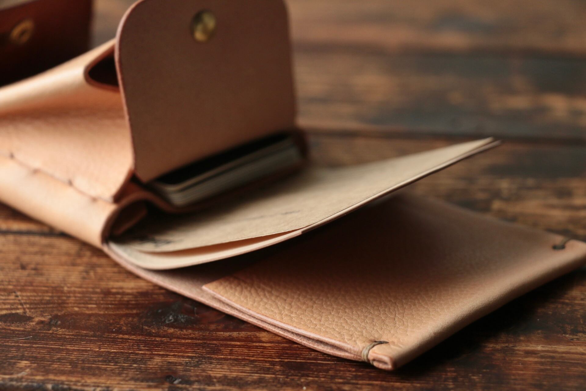 使い始めは革が硬くカードの出し入れやフタが固く感じられますが、使い込む事で徐々に馴染んでいきます。