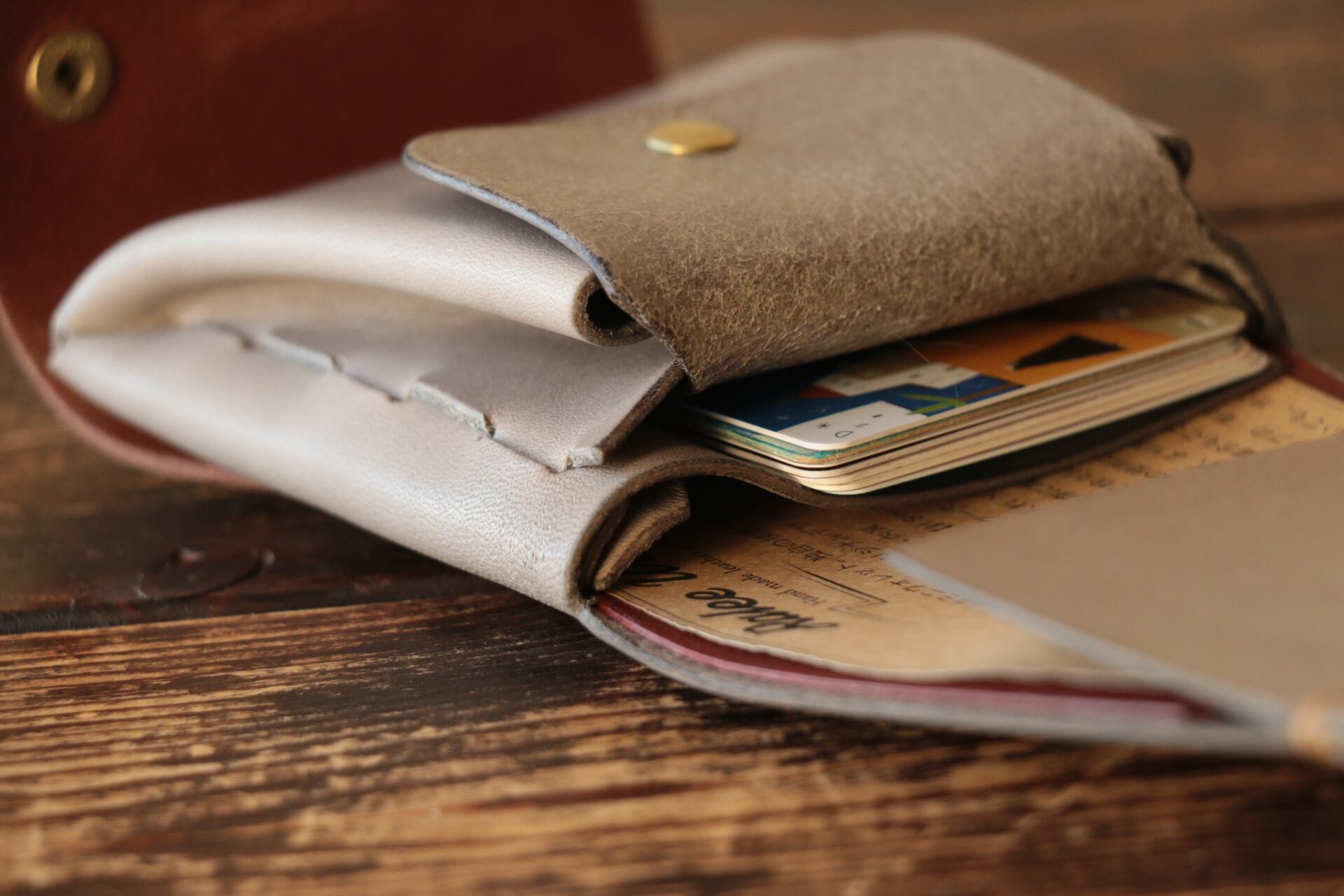 使い始めは革が硬くカードの出し入れやフタが固く感じられますが、使い込む事で徐々に馴染んでいきます。